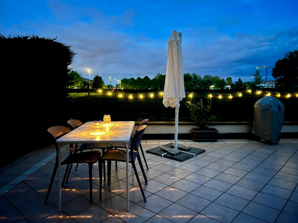 Casa cómoda y luminosa con terraza en la que disfrutar de un gran desayuno. Relájese en una cómoda cama doble, en el sofá de la sala de estar frente al televisor o en la tumbona de la terraza. La casa también tiene un baño con ducha y lavadora,cocina equipada para cocinar y lavavajillas. Cerca hay bares, pizzerías, supermercados ( CONAD y ESSELUNGA), paradas de autobús 5 y 8 ideales para llegar al centro y a la estación. Espacio de estacionamiento gratuito en el patio.