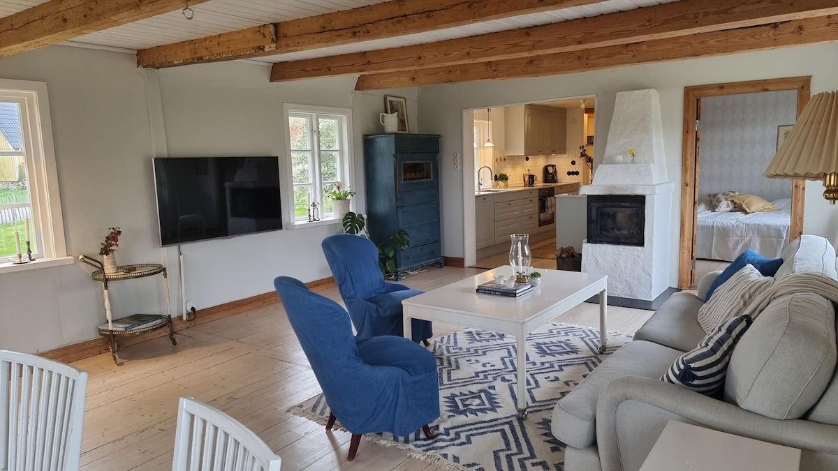 Encantador apartamento en villa en zona tranquila a pocos minutos de la playa y la naturaleza. Entrada privada, patio y parte del jardín. Dormitorio con cama matrimonial y habitación pequeña con litera para niños/jóvenes Cocina totalmente equipada, baño con ducha, sala de estar con TV nueva donde puedes Chromecast desde tu propio teléfono, etc. Wifi gratuito y rápido. A 10 minutos a pie desde ferrocarril y autobuses. A 200 m de Kattegattleden. A 2, 5 km hasta el centro de Båstad. Sábanas y toallas incluidas. Limpieza por tu cuenta o por una tarifa adicional.