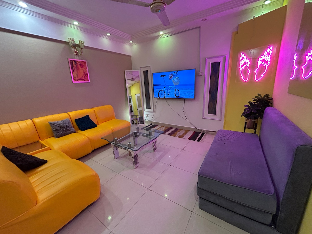 Escápate a nuestro elegante condominio de alojamiento familiar, ubicado en el vibrante barrio comercial de Zamzama de Karachi, a pocos pasos de atracciones y restaurantes locales. Este espacio cuidadosamente diseñado ofrece un retiro sereno, perfecto para los viajeros que buscan un hogar lejos de casa. Normas de la casa: - Mantén bajos los niveles de ruido y respeta a los vecinos. - Ayuda con las tareas domésticas ligeras y limpia lo que ensucies. - Las parejas no casadas están estrictamente permitidas. - Se permiten mascotas con aprobación previa y tarifas adicionales.