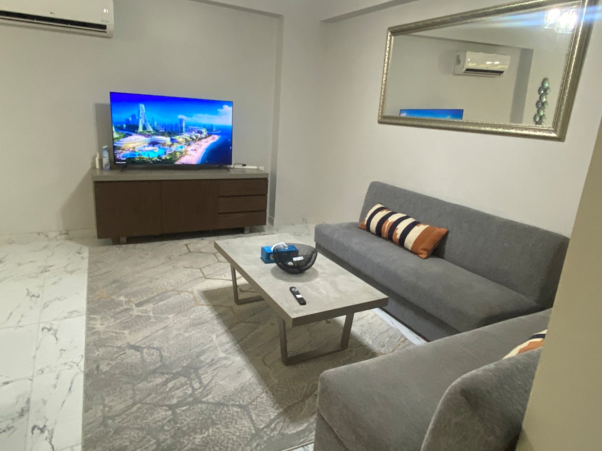 Modern apartment which really has great features, I am sure u like and enjoy your staying just book and tell your opinion . This unique 1BR apartment is brand new furnished, Located near to the beach in Muscat ( Ghubrah ) Just a 3 minutes walk to the beach , The location is near to all the services and easy to move around the city It fully equipped and designe to fit ur needs The Gym, Swimming pool and Sauna available as well Cleanliness is our first priority