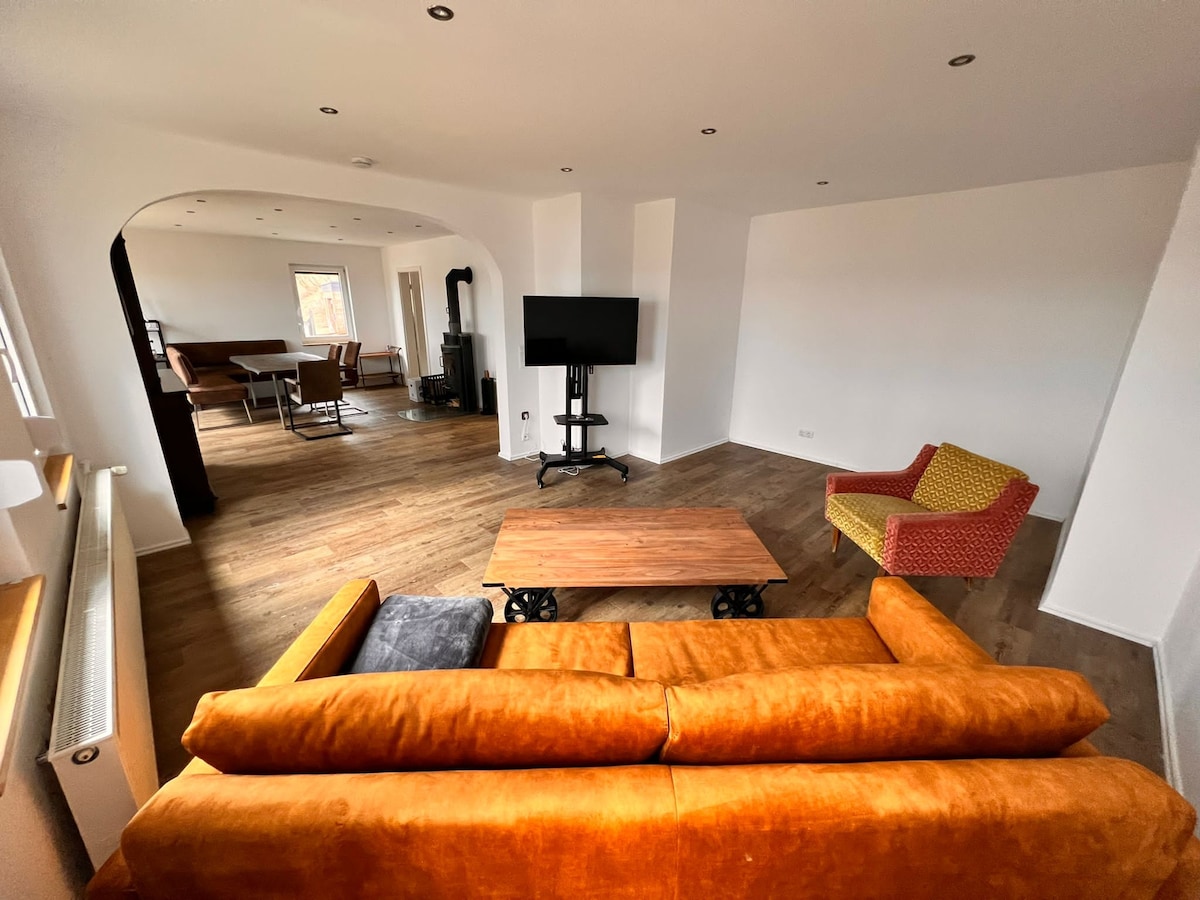 Moderno y luminoso apartamento de 4 habitaciones en el norte de Erlangen. Hasta 6 personas. Aparcamiento gratuito. A 5 minutos de la parada de autobús más cercana. El apartamento recién renovado se encuentra en el 1er piso y está equipado con 3 dormitorios, sala de estar, cocina y baño. Todos los dormitorios tienen una cama plegable (160x200), un armario, una pequeña mesita de noche y una ventana con persiana eléctrica exterior. Otros aspectos destacados: - Wifi gratuito - TV SATELITAL - Zona de trabajo - Lavadora - Cafetera