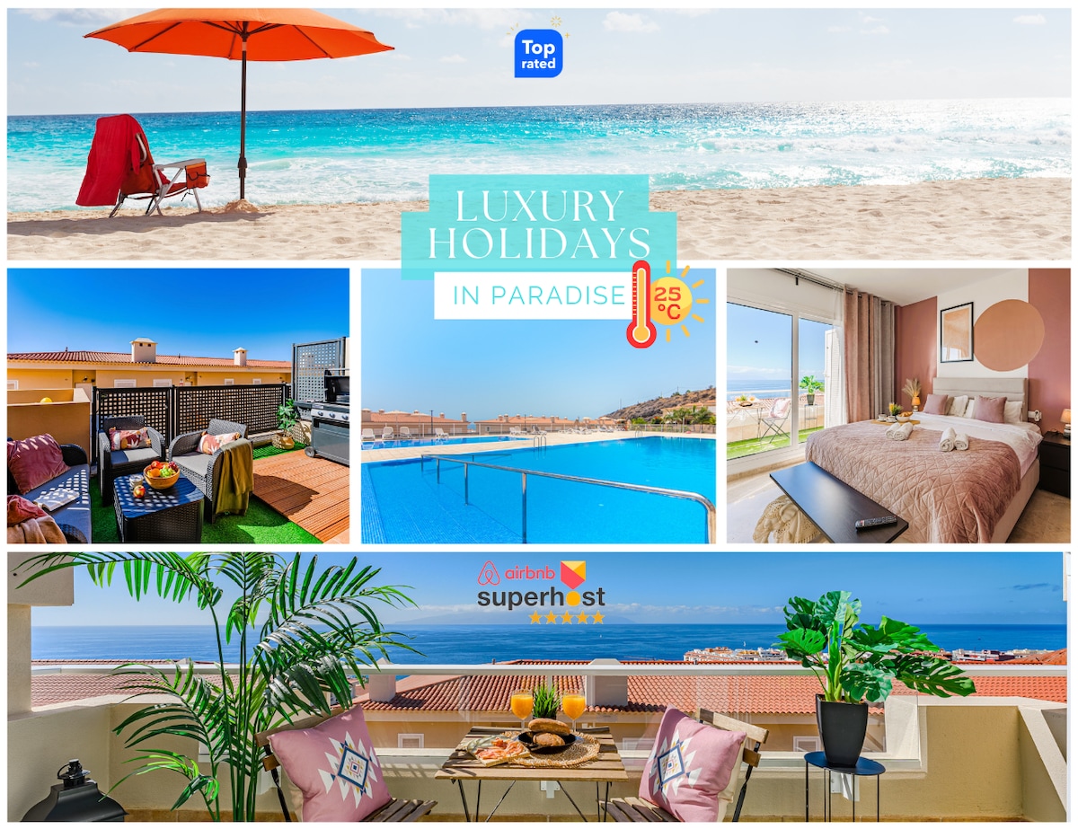 Piscina y Mar en Costa del Silencio, Oasis Relax