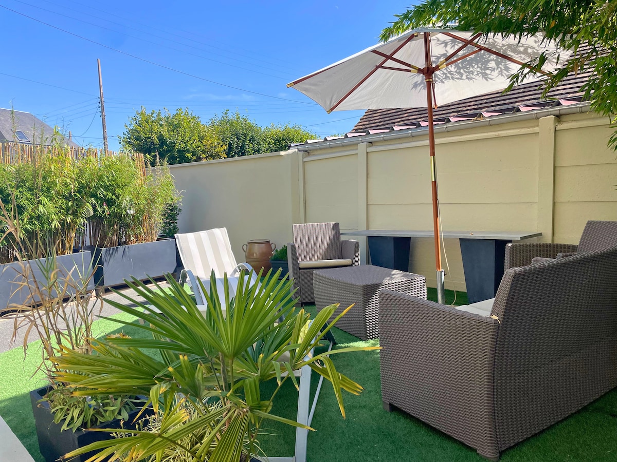 Joli F2 refait à neuf avec terrasse et jardin à 50m de la plage, accès direct au club de voile, location de paddle.. piste cyclable pour longer les plages du débarquement et rejoindre la ville de Caen par le canal. Très proche supermarché et nombreux commerces de proximité (lavomatique, cordonnerie...) sans oublier le casino, la thalasso et son spa accessible à la journée, centre équestre etc... En voiture : 15min de Caen, 2h00 de Paris. Arrêt de bus à proximité.