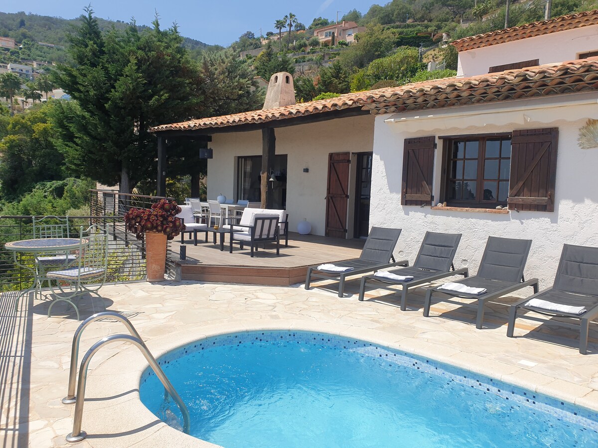 Appartement terrasse totalement indépendant, avec vue panoramique des montagnes à la mer dans une bergerie du XVIIIème siècle au cœur d'une forêt classée, en plein soleil et au calme absolu, avec piscine chauffée du 1er Avril au 31 Octobre, jacuzzi, salle de billard, baby-foot, terrain de pétanque, chemins de randonnée pédestre devant la porte d'entrée. L'emplacement idéal de la propriété à 20mn de l'aéroport et de la mer, permet de visiter aisément tous les plus beaux sites de la Côte d'Azur.