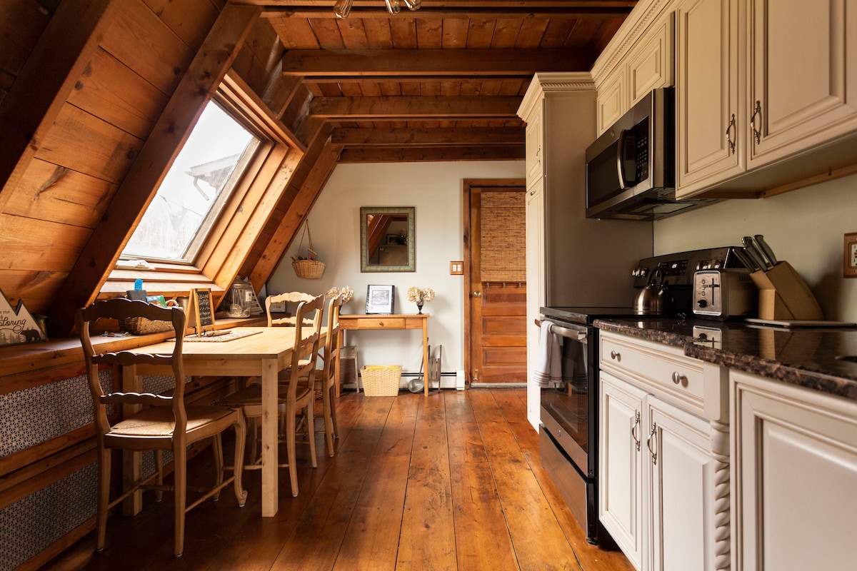 ¡Te damos la bienvenida a Cabin in the Sky! A 1671 pies de altura, Cabin in the Sky es una cabaña de madera recién reformada ubicada en la ladera de la montaña con vistas tranquilas. El alojamiento ofrece la combinación perfecta de aislamiento y comodidad. Por las mañanas/noches, disfruta de una taza de café o una copa de vino desde la terraza privada con vistas a la naturaleza pura (no hay ningún coche, calle o edificio a la vista). Durante el día, aprovecha el senderismo local, el esquí, los mercados de agricultores, los restaurantes y las tiendas.