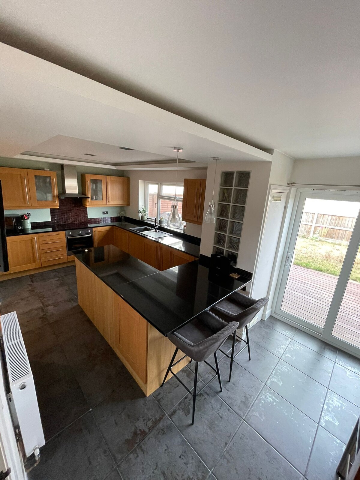 En este alojamiento se respira tranquilidad: ¡relájate con toda la familia! Una casa limpia y espaciosa con dos dormitorios dobles y una gran cocina familiar, que incluye una barra de desayuno con dos taburetes. Un comedor recién decorado, que se beneficia de una gran mesa de comedor para 6 personas. Una modesta sala de estar se encuentra en la parte delantera de la casa. Arriba hay un baño familiar con bañera y ducha aérea. En la parte trasera de la propiedad hay un jardín básico. La casa se beneficia de una entrada privada, espacio para dos coches.