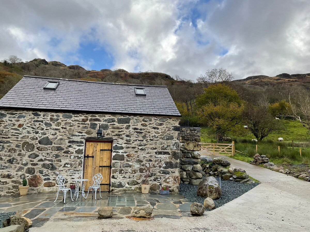 Acogedor granero restaurado con cocina en Perthi con un quemador de madera, conservando las vigas de madera originales del siglo XVII y el carácter de época, con hermosas vistas a las montañas Eryri (Snowdonia). Ubicado justo encima de Beddgelert en una granja de montaña en funcionamiento en un entorno rural tranquilo, a solo 7 minutos en auto del sendero Rhyd Ddu Snowdon, con paseos disponibles directamente desde la puerta.
