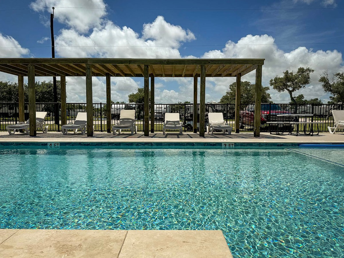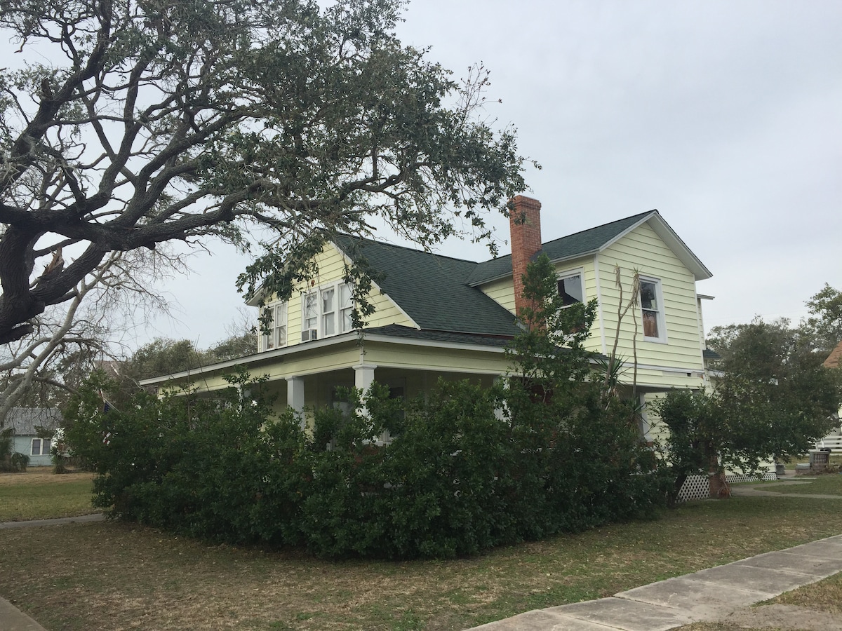 Fishers, hunters, Winter Texans, remote-workers, and folks just wanting to get away to the coast: make happy memories at this unique and family-friendly place. Dogs welcome. Located in Aransas Pass (Saltwater Heaven) and only seven miles to free ferry to Port Aransas beaches. Boat parking, covered car port, completely fenced yard, outdoor shower in the enclosed courtyard. The 550 square-foot cottage uses central air-and-heat, keeping you cool - no matter how hot it gets in South Texas.