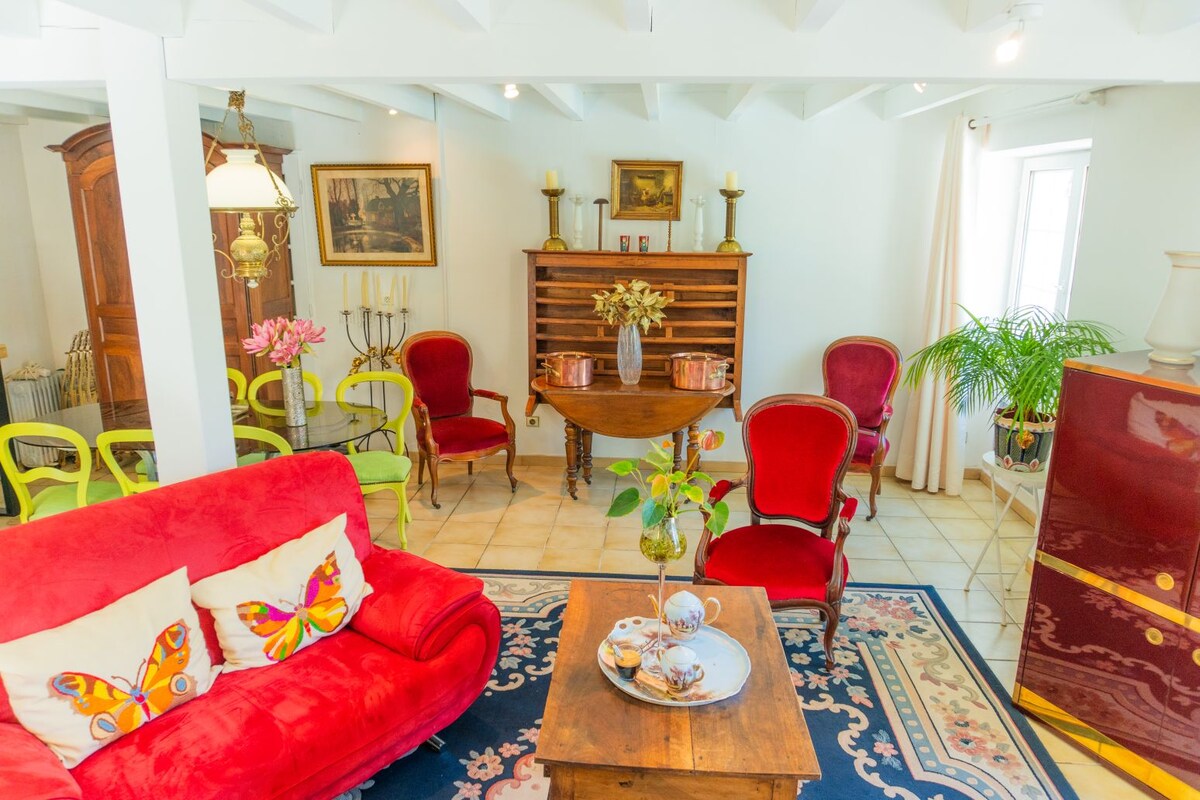 (La temperatura del agua de la piscina es buena a partir de junio) Anfitrión confirmado, ofrezco esta espaciosa casa de piedra, que combina encanto y comodidad para una experiencia auténtica, inusual. Bien situada a 10 minutos de la estación de tren de Burdeos en tranvía, bien accesible. Totalmente equipada para su comodidad: ropa de cama de calidad, cocina completa, sala de juegos, gran piscina, wifi, terraza, muebles de jardín, decoración atípica, terraza sombreada rodeada de densa vegetación. Empresa seria y flexible.