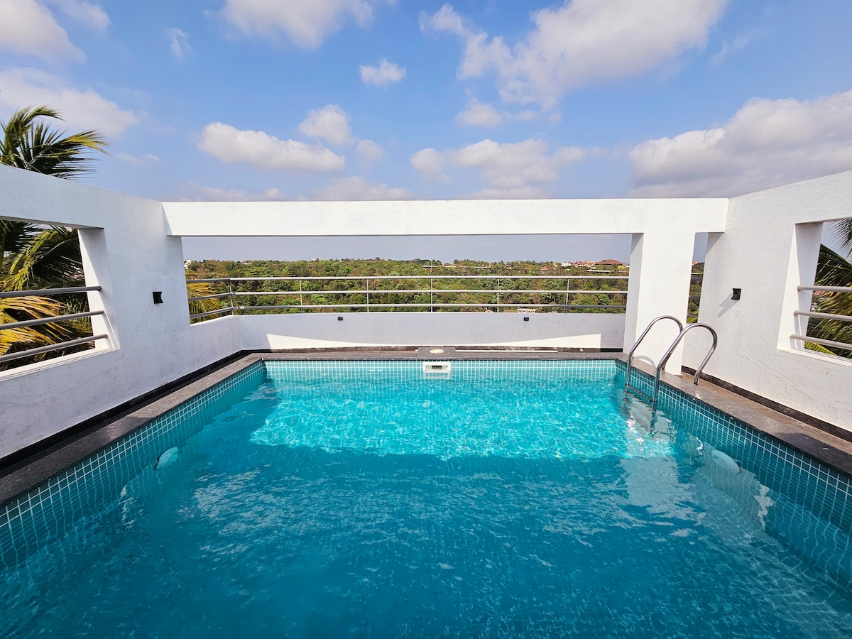 Azulejo-Inspired 2BHK con piscina y gimnasio | Río-De Goa