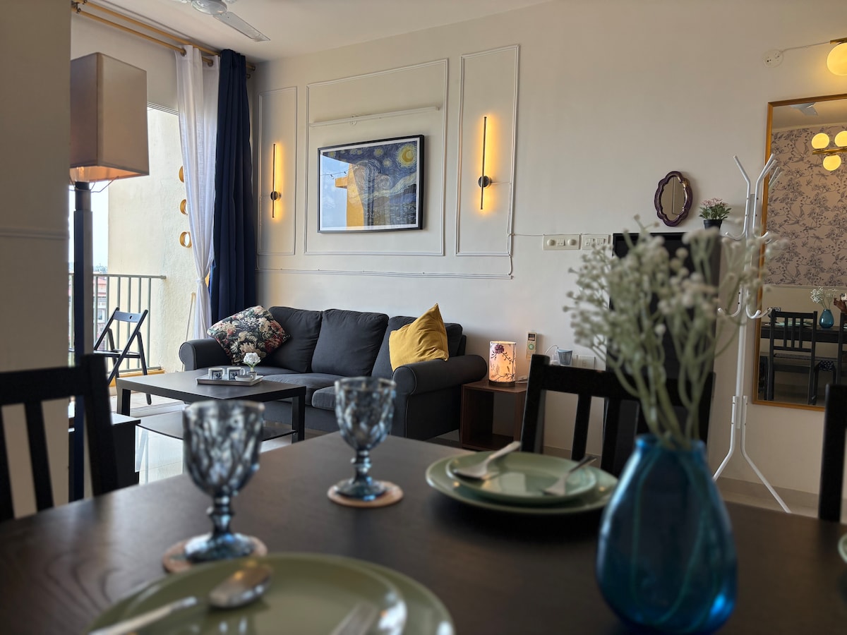 Azulejo-Inspired 2BHK con piscina y gimnasio | Río-De Goa