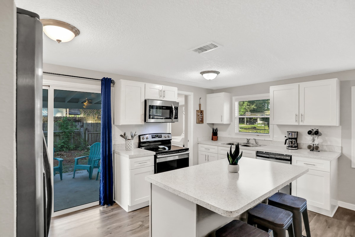 The whole group will enjoy easy access to everything from this centrally located place. Fully remodeled with new flooring, modern kitchen, fresh paint and fast wifi. Large smart TV in living as well as in 4 bed rooms. Fully fenced backyard. Dog friendly. Close to tons of restaurants and shops. Great location right off 295 so you can get to anywhere in Jacksonville quick.