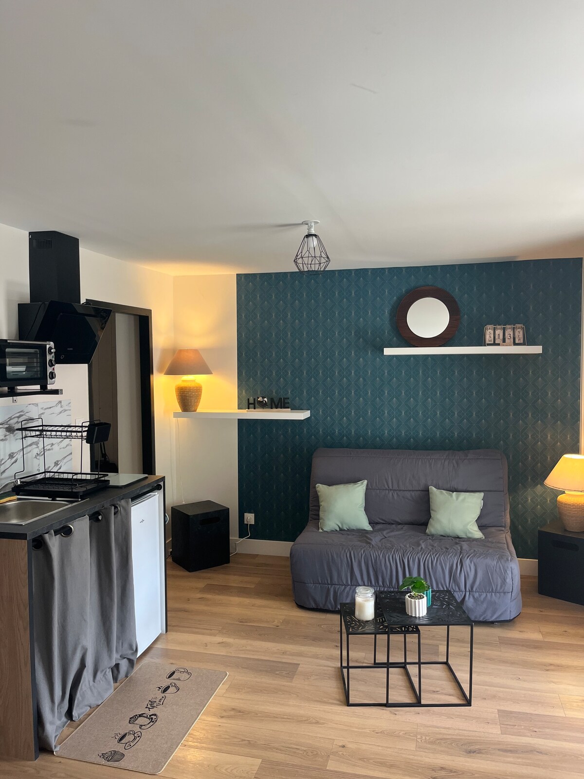Bienvenido a este encantador estudio moderno, idealmente situado a lo largo del parque de la Sauvagère. *Confort y equipamiento: Cocina totalmente equipada, acogedora sala de estar con sofá y televisión, zona de noche con cama doble, baño moderno y mucho espacio de almacenamiento. *Conexión a internet rápida: fibra disponible en Wifi o a través de enchufes RJ45 *El alojamiento está pegado a nuestra casa, pero tiene un patio privado vallado con su mesa exterior *Lugar de aparcamiento disponible justo enfrente del patio