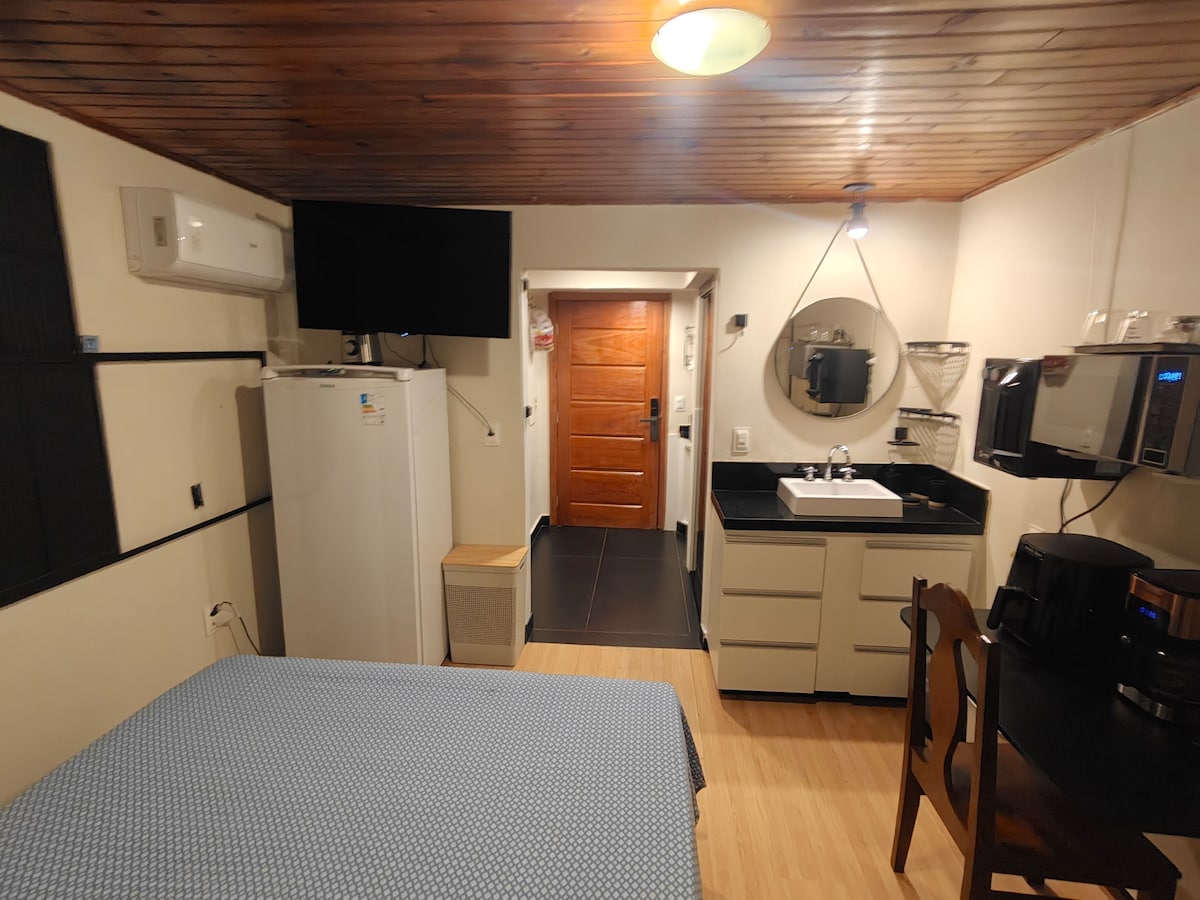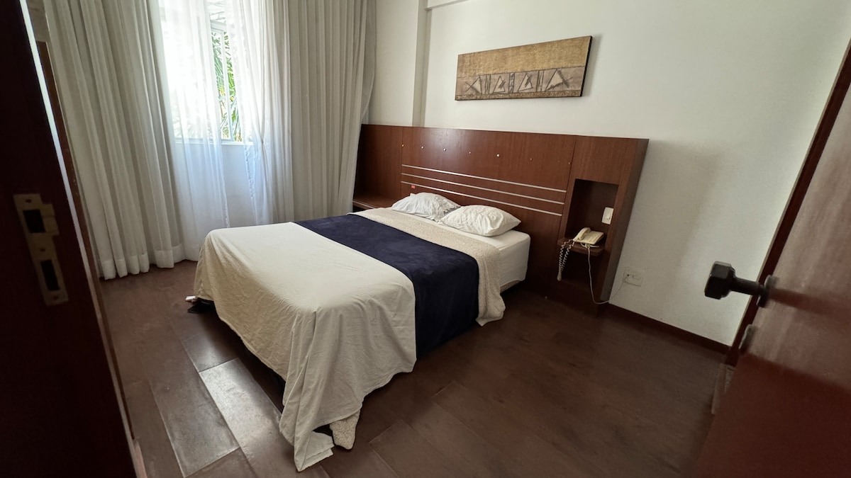 Apartamento moderno, 32m2, ubicado en el mejor punto de Sion. Cocina práctica con minibar, cocina, TV (canales abiertos/Netflix), aire acondicionado, secador de pelo, hervidor eléctrico e internet. Zona Sur, junto a la Plaza JK y la Avenida Bandeirantes, frente a un supermercado. Azotea del edificio con gimnasio, sauna, piscina, sala de estar y cocina comunitaria (agua, máquina de hielo). Limpieza a pedido disponible. Edificio seguro con conserjería las 24 horas. *No hay garaje incluido.