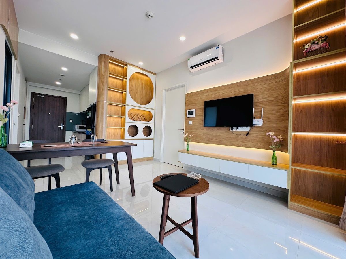 Nơi ở độc đáo này mang một phong cách rất riêng. Căn hộ 1 giường ngủ, nằm ngay tầng 4 (Tầng tiện ích của toà nhà: Dễ dàng sử dụng hồ bơi, khu vui chơi trẻ em, vườn hoa, khu BBQ ngoài trời, phòng xông hơi, GYM), vị trí trung tâm thành phố thường xuyên diễn ra các cuộc họp hội nghị, thương mại, dịch vụ. Có xe bus miễn phí đi trung tâm Hồ Chí Minh và ngược lại.