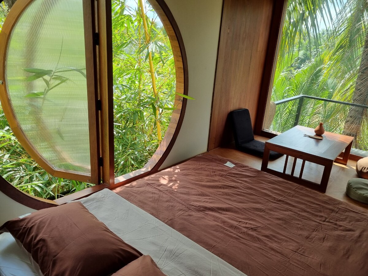 A spacious, cozy, connect-to-nature homestay. A space to relax or do anything that nourish your mind and body. The apartment is on the 2nd floor, furnished with a large living room, a bedroom, a zen room (could become a 2nd bedroom if you book from 3-4 guests), a kitchen, a spacious bathroom with an indoor bathtub and outdoor shower, a large river view balcony NOTE: - If book 1-2 guests: 1 bed - If book 3-4 guests: 2 beds - If book 1-2 guests but need 2 beds: extra price is 250.000vnd/ night