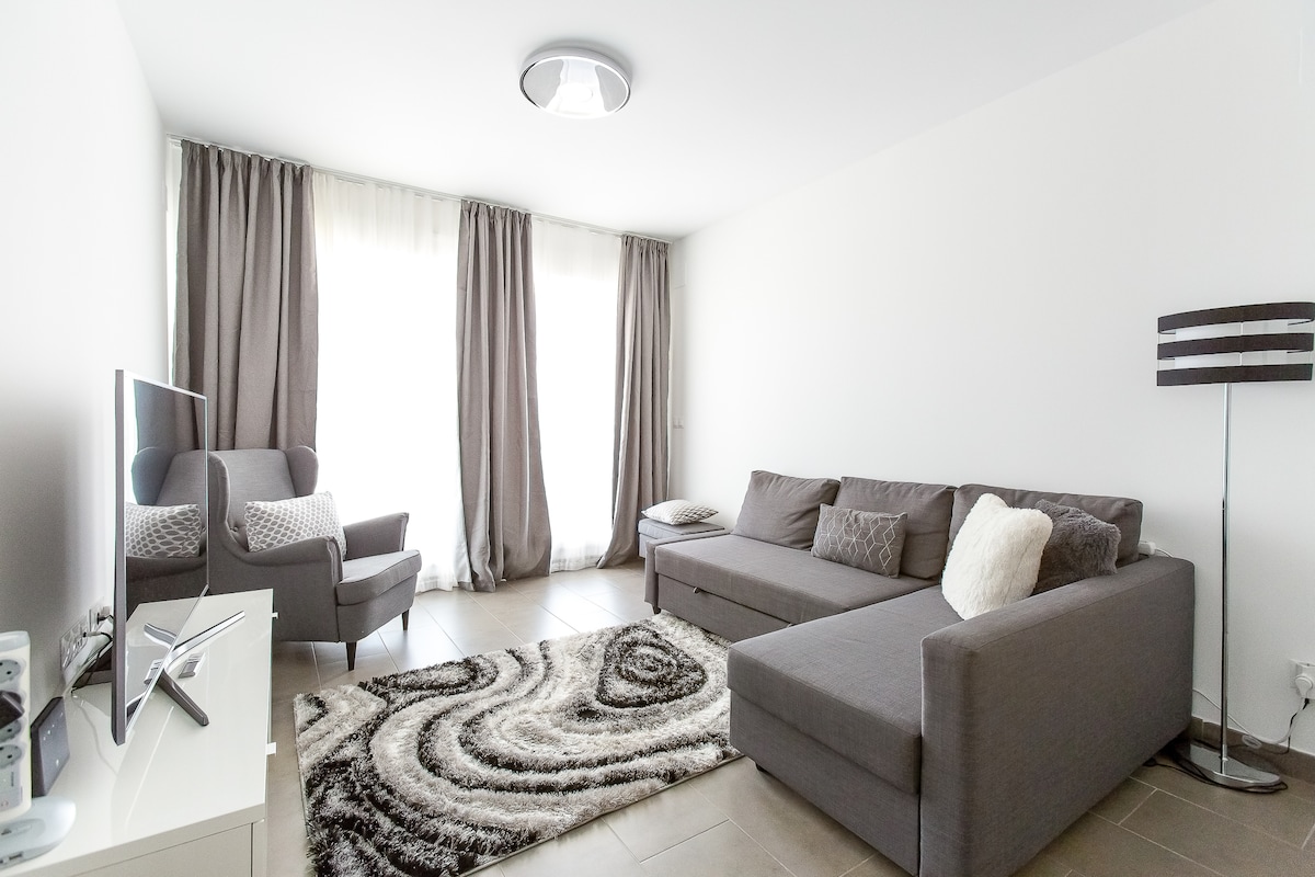 Desde este luminoso y moderno apartamento de 114 m2 prácticamente se puede oler el mar. Hay dos dormitorios con grandes armarios, aire acondicionado, ventiladores, calefacción, camas cómodas y todo lo que un aficionado a la tecnología pueda desear, desde SmartTV con barra de sonido hasta PS4. Internet 1Gb/1Gb. Cocina y baño diseñados para sentirse como en su propia casa. El amplio balcón con vistas al mar ofrece privacidad. Diseño moderno. Acceso a todos los servicios de la urbanización.