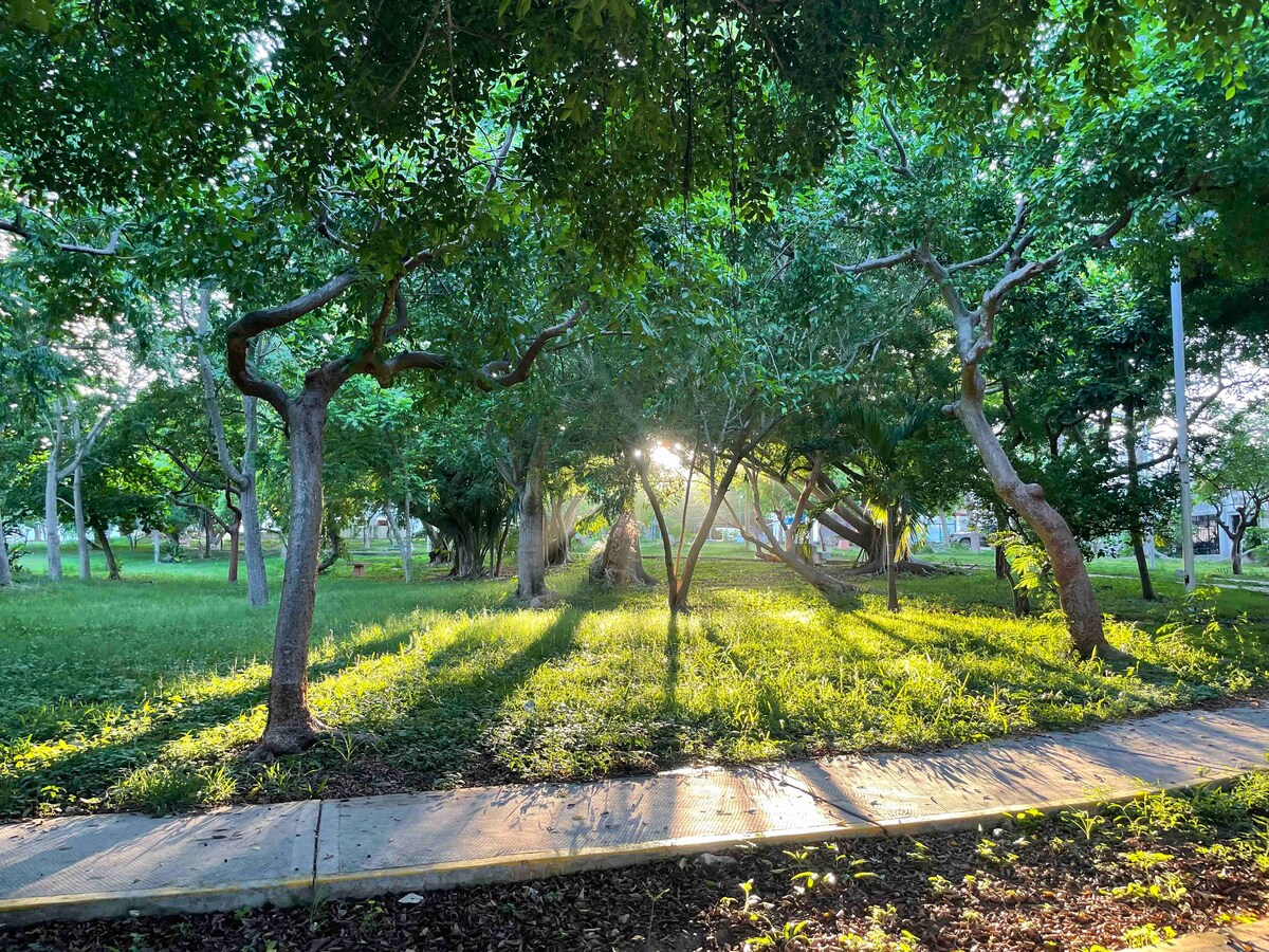 Disfruta de este alojamiento tranquilo y céntrico, desde donde podrás acceder a los lugares más destacados de la ciudad: Parque de las Palapas Terminal ADO Centros comerciales y nocturnos. Playa más cercana a sólo 15 minutos en coche. Espacio ideal para el descanso o trabajo. Tenemos cámaras de seguridad en la entrada de la propiedad, pasillo de acceso y puerta de entrada. Aparcamiento sujeto a disponibilidad o bien justo afuera de la propiedad sin costo. Identificación con foto requerida.