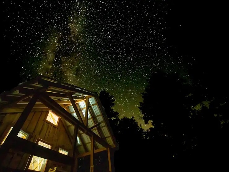 Acogedora cabaña a 16 millas de las pistas en 10 acres de bosque.