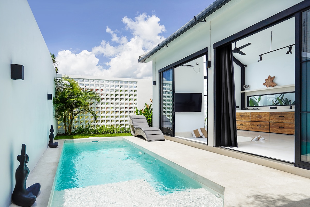 ¡Una lujosa villa privada de 1 dormitorio ubicada en el corazón de Pererenan! Relájate en privado con tu propia piscina y muebles elegantes. Estamos a poca distancia a pie de todos los cafés. No hay mejor ubicación en el moderno barrio de Pererenan, que también está a 5 minutos en coche del corazón de Canggu y a 800 metros de la playa. La villa cuenta con una cocina totalmente equipada, cocina de gas, cafetera espresso Delonghi, TV de 43 pulgadas (Netflix gratuito), aire acondicionado frío, una enorme bañera y tu propia piscina privada.
