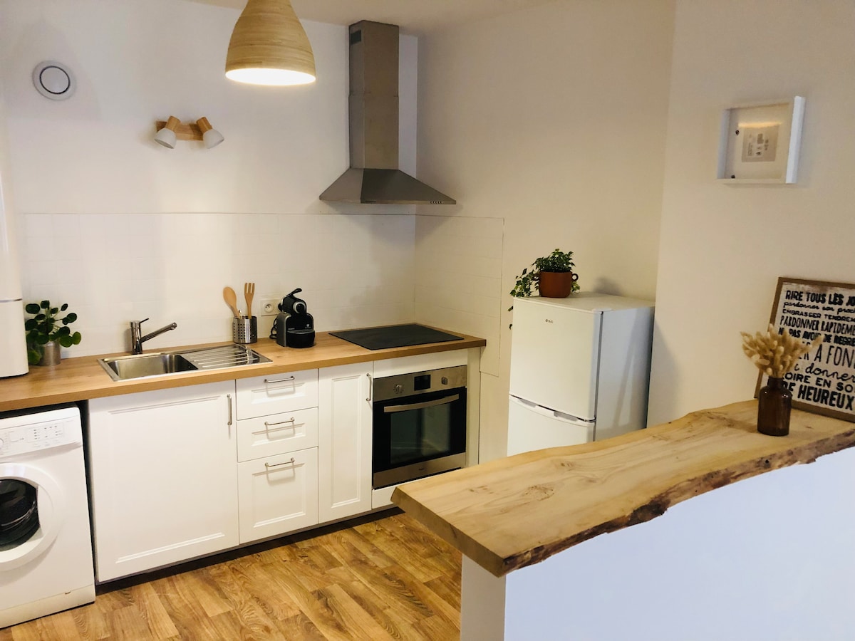 Urban Eden es una casa adosada de 60 m² con 3 habitaciones y un pequeño jardín. Fue recientemente renovada y está idealmente ubicada a un minuto a pie del centro histórico y de la estación de tren. Relájate completamente en el jacuzzi protegido en el jardín o descansa en la habitación con aire acondicionado equipada con una cama tamaño queen... ¡Olvídate de tu coche y descubre el casco antiguo de Bergerac, o incluso ve más lejos a Sarlat en tren!