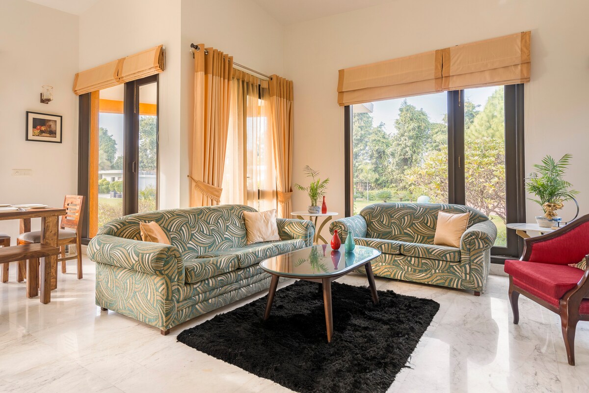 Bienvenido a Amarna - The Retreat, una impresionante villa de lujo de 4 dormitorios cerca de NCR, a poca distancia en coche de Gurgaon, Delhi y Manesar. Perfecta para familias, amigos o retiros corporativos, esta serena escapada combina la elegancia moderna con la paz de la exuberante vegetación. Disfruta de servicios de primera calidad, una piscina privada y amplios interiores diseñados para la relajación y la conexión. Entre los mejores alojamientos en Airbnb cerca de Delhi-NCR, ofrece la mejor combinación de comodidad y conveniencia. ¡La mejor villa cerca de Delhi-NCR! 👌