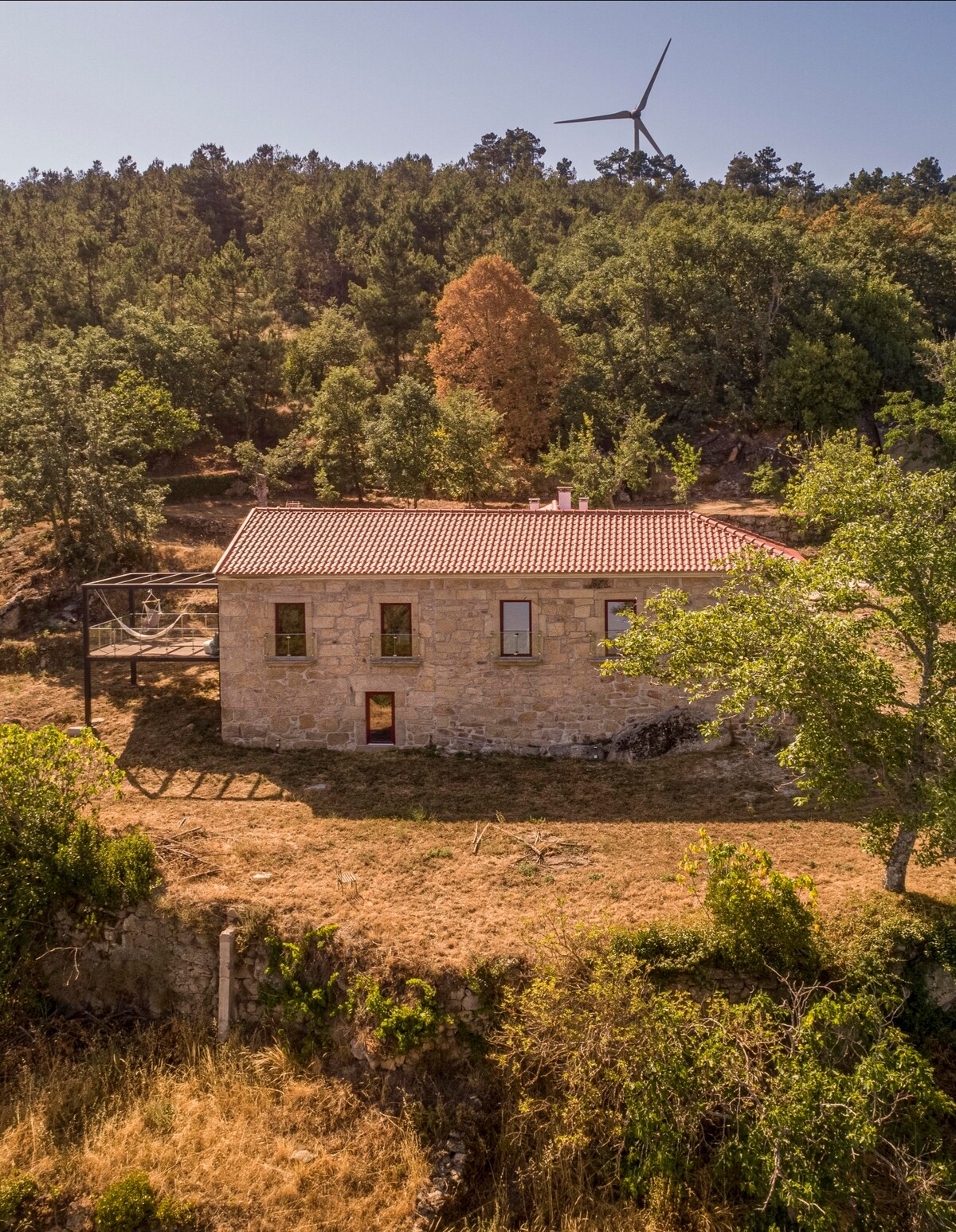 La casa está ubicada en una finca cerrada. Tiene vistas a un lago, un bosque de pinos y la Serra da Estrela, en un entorno natural de gran belleza. Cuenta con todas las comodidades necesarias para unos días de tranquilidad, con aire acondicionado y calefacción, nevera, microondas, pequeña placa de inducción, cafetera eléctrica, licuadora, barbacoa de gas y otra de carbón en el exterior y cafetera (cápsulas Delta).