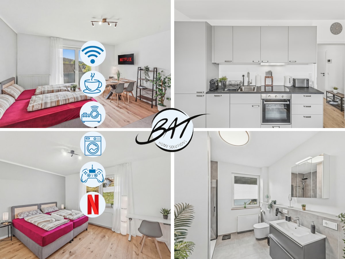 Te damos la bienvenida al hermoso Mosel. Nuestro apartamento de 3 habitaciones es un apartamento para no fumadores. Está permitido fumar en el balcón. Cuenta con un dormitorio grande con cama doble, cama de bebé disponible. El nuevo baño luminoso tiene una ducha con efecto de lluvia y una bañera. Puedes relajarte en la pequeña sala de estar con TV. La cocina con balcón está totalmente equipada con horno, nevera, lavavajillas y cafetera y mucho más. El transporte público, la estación de tren y el centro de la ciudad están a poca distancia a pie.