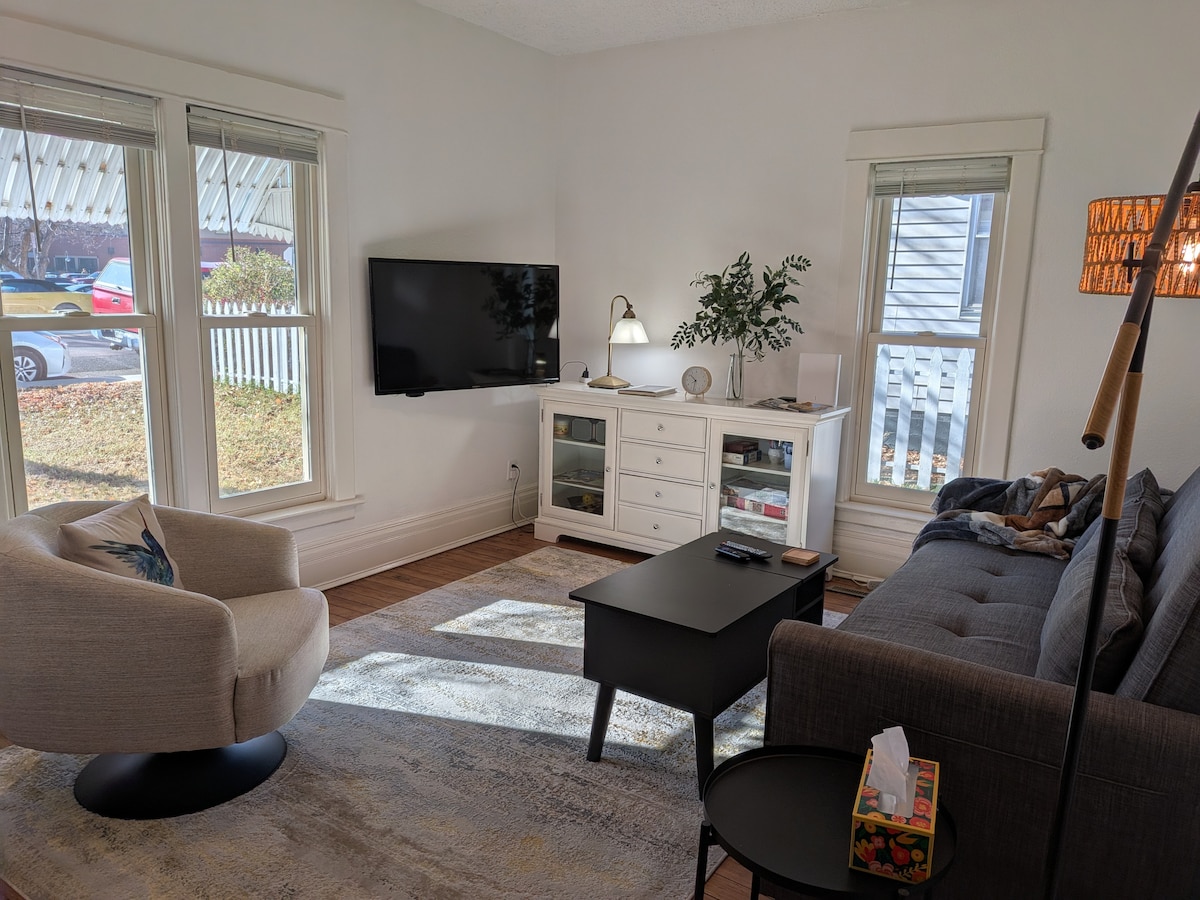 Encantadora e histórica casa de 2 dormitorios en el centro de Loveland, Colorado. Recientemente remodelada, esta joya ofrece un acogedor refugio cerca de todo lo que ofrece Loveland. Explora tiendas, restaurantes y galerías de arte locales a solo unos pasos. El Parque Nacional de las Montañas Rocosas está a 35 millas en coche. Cocina totalmente equipada, aire acondicionado y una cómoda sala de estar. Duerme profundamente en los acogedores dormitorios: 1 habitación con cama tamaño king y 1 con cama tamaño queen. Disfruta de la mezcla perfecta de historia y encanto, en el corazón de Loveland. ¡Reserva tu estancia ahora!