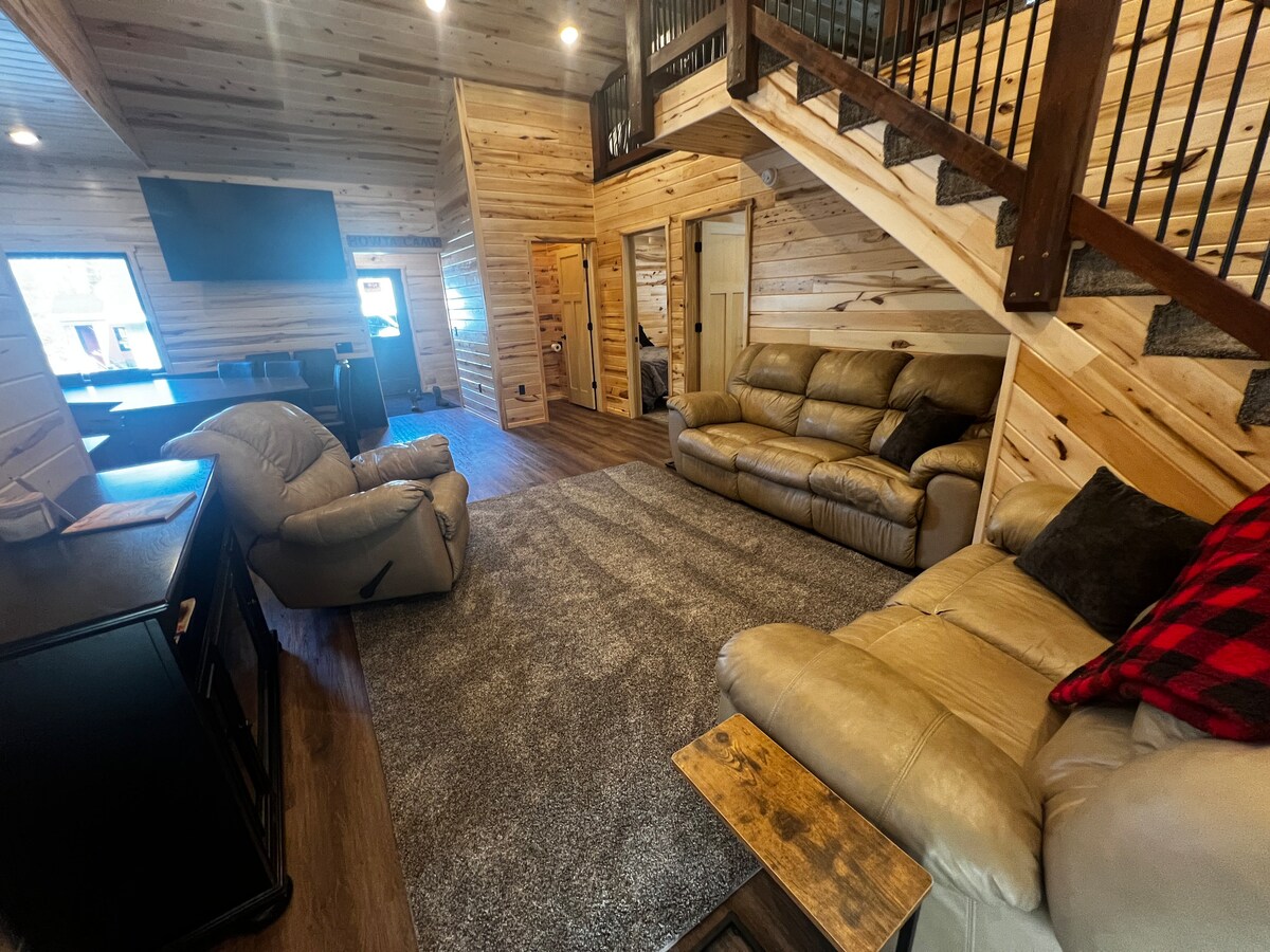 PERFECTO PARA MÚLTIPLES PAREJAS O FAMILIAS Esta no es la cabaña de tu abuelo convertida en Airbnb. Sasquatch Lodge fue diseñado a propósito para maximizar 3500 pies cuadrados de espacio, proporcionando mucho espacio y privacidad para nuestros huéspedes. 4 dormitorios, cada uno con baño privado, con ropa de cama cómoda y de calidad, artículos de papel, artículos de ducha, sábanas y toallas. Hemos seleccionado cuidadosamente un tema caprichoso de sasquatch que te encantará y te divertirás tratando de encontrarlos todos. A solo un par de cuadras de Indianhead Mt.