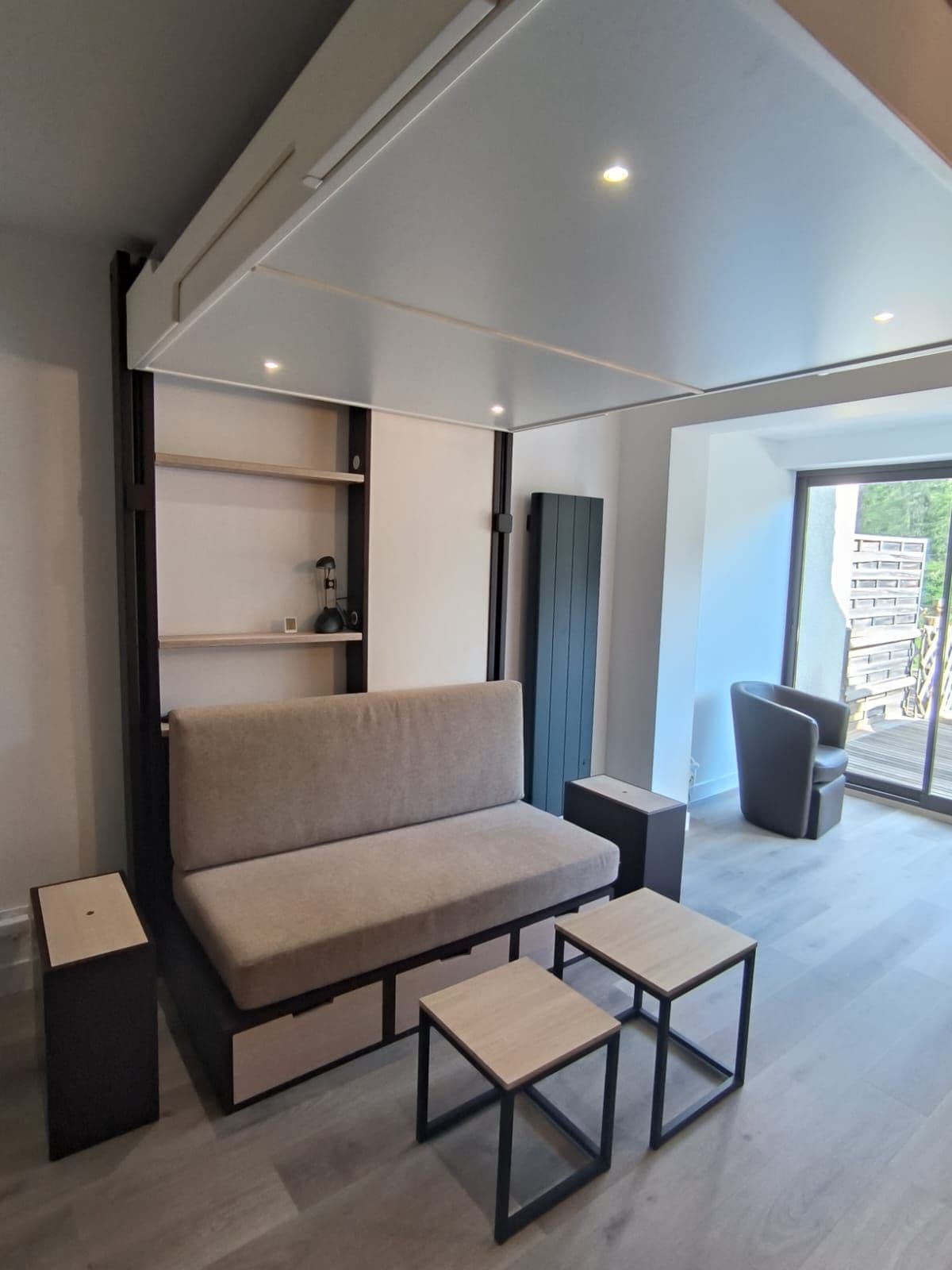 Recently renovated studio flat, very bright, under the roof with beautiful views of the village and valley, located in the heart of the village, near to all commerce (bakery, tobacco, restaurant, organic market, supermarket, ATM, etc.) At 1 hour from Nice and 45 minutes from the snow.