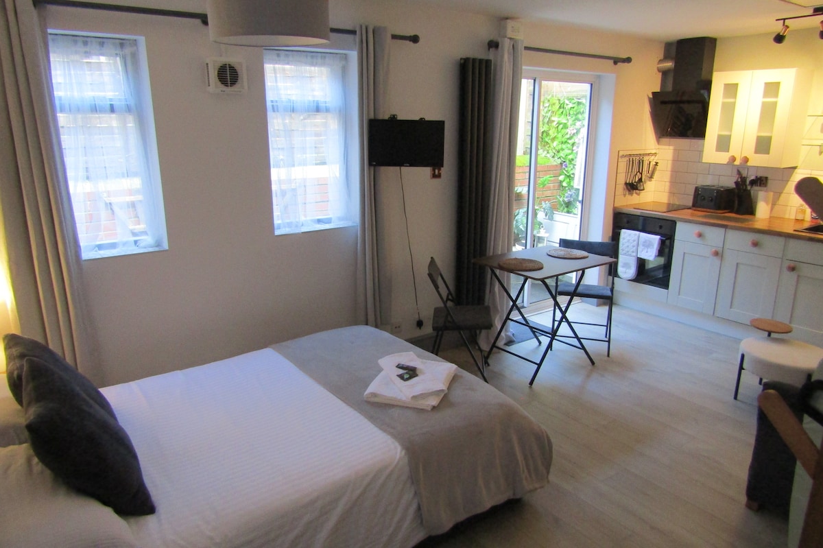 Unwind in this beautiful, newly built suite with luxury fittings, superking bed and separate seating area, ensuite shower room, patio, and secure off street parking directly outside the suite. Located in a peaceful residential area, a 10 minute walk to the historic centre of Beverley offering bars, restaurants, shops, etc. and the Flemingate shopping area, the historic Beverley Minster, and Beverley's Westwood Common & Racecourse. 10 minute walk to train and bus stations.
