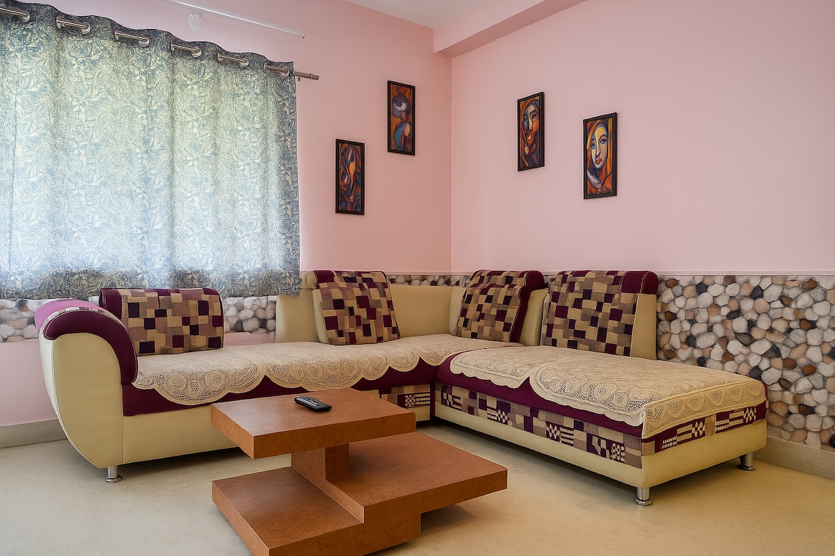 Entra en nuestra inspiración retro con 2 amplios dormitorios, 2 baños modernos, una vibrante sala de estar y un comedor, te sentirás como en tu propia casa. ¿Quieres cocinar? ¡La cocina totalmente equipada te cubre! Y para ese huésped adicional, tenemos una cama individual lista. Situada a solo 5 minutos de la estación de metro Salt Lake Sector V, esta casa es tu puerta de entrada a la ciudad. Ya sea que estés asistiendo a reuniones en el centro de TI cercano o explorando los lugares culturales de Calcuta, todo está a tu alcance.