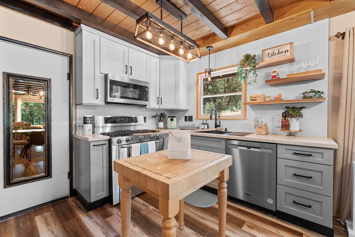 ¡Te damos la bienvenida a Quiet Pine Cabin! Lleva tu escapada a Big Bear al siguiente nivel con esta linda cabaña de estilo Gambrel, ubicada en el borde del Bosque Nacional con acceso directo a senderos y a poca distancia en coche del pueblo y los remontes. Disfruta de las modernas comodidades mejoradas, sin perder el encanto acogedor de la cabaña. La tranquila terraza trasera (equipada con una sala de estar al aire libre, chimenea, parrilla y jacuzzi), mira hacia el bosque, lo que te permite relajarte y sumergirte en la naturaleza, desde la observación de aves hasta la observación de estrellas.