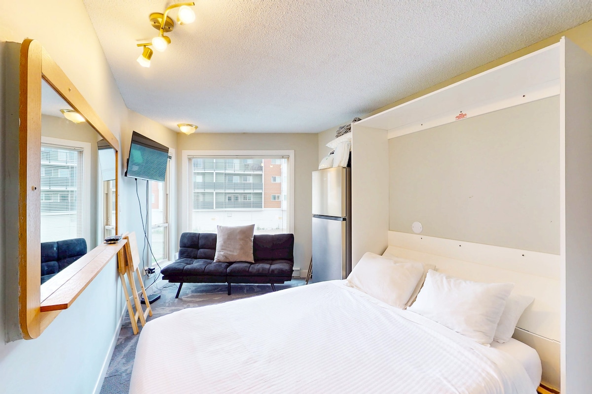Newly renovated studio in the heart of the village at Big White Ski Resort. Located a quick stroll to the best bars, restaurants and shops on the hill! - Ski-in Ski-out Location - Free Secured Underground Parking - Access to Sauna - High Speed Internet & Cable TV - Walking Distance to Bars, Restaurants & Shops There is also a communal outdoor hot tub to enjoy in the winter. Please note that it may sometimes be closed for maintenance and cleaning. Book now for an unforgettable escape!