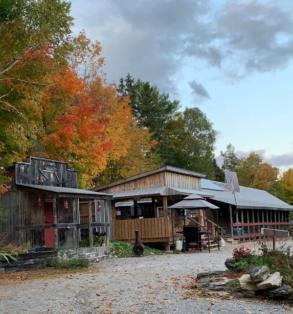 #GBJ-0003 Come stay on a beautiful acreage (65 acres) beside our stone house set on a hill overlooking a lake on one side and hills of maple, white pines and limestone cliffs on the other. The cozy 1 bedroom sleep cabin with a hot tub, its own bathroom and kitchenette accommodate our airbnb guests. We have gardens, apple trees, chickens, maple forest we tap, the lake for you to swim and play in with canoes and a sauna, as well as trails to walk in to enjoy nature and the abundant wildlife.