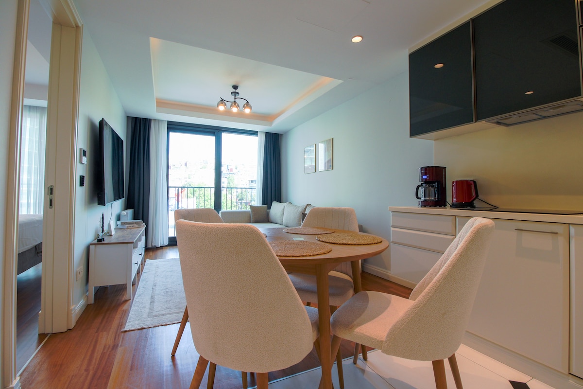 Pasarás un rato muy agradable en este bonito apartamento estudio con terraza, que se encuentra en el punto más céntrico de Estambul, en una ubicación tranquila y maravillosa y cuidadosamente preparada con su restauración recién terminada. La entrada de nuestra habitación en el cuarto piso, no hay ascensor y una pequeña zona espaciosa. Nuestra habitación tiene 1 cama doble, 1 cocina (no hay fregadero en la cocina), 1 baño y una mesa, wifi, TV inteligente, aire acondicionado y balcón con terraza con vistas increíbles.