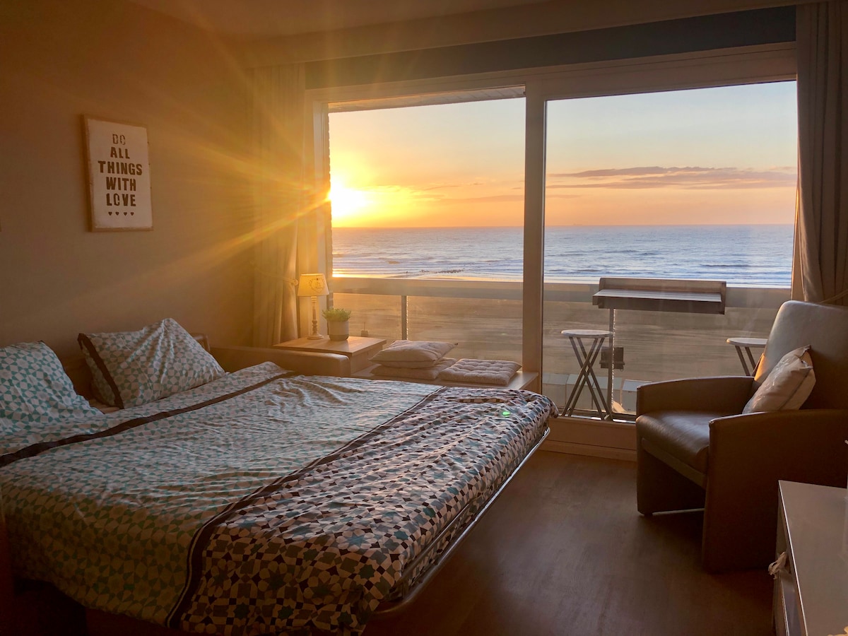 Departamento luminoso con vistas panorámicas al mar y a las dunas. El comedor se puede transformar en una terraza cubierta donde puedes disfrutar de la puesta de sol. El departamento cuenta con una cocina abierta y totalmente equipada con lavavajillas. -2 dormitorios con camas tamaño queen - baño con bañera e inodoro + ducha con lavabo + inodoro en el pasillo Coage: altura máxima 1,85m Entre O'Neill Beachclub y Pier (parte tranquila del malecón) Tranvía costero a la aplicación. Brujas a 15 minutos en tren/coche.