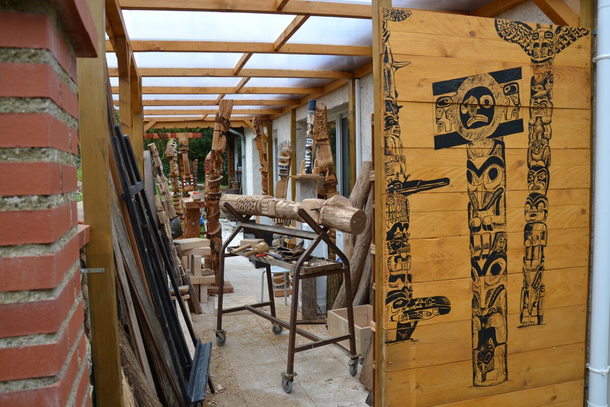 En el corazón del valle del Loira, cerca de los castillos de Chenonceau, Amboise, Loches y muchos otros, te alojarás en el estudio de un artista. Tranquilo, entre esculturas, pinturas y naturaleza, este espacio de creación tan luminoso te promete una estancia extraordinaria.