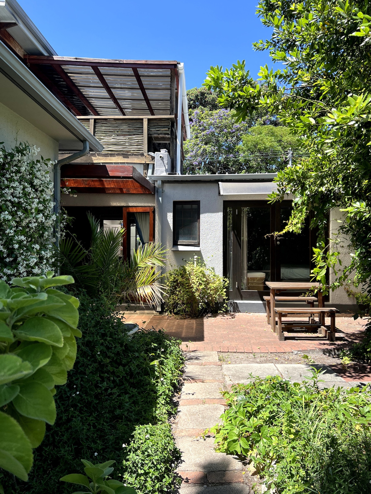 Bright and comfortable two bedroom cottage in leafy Upper Kenilworth. Fully private with two en suite bathrooms, open-plan living and dining, kitchen and a braai area in a quiet courtyard. It is located in a safe, walkable area close to shops and many restaurants. It is block from the station with easy access to town, beaches and everything in between. Hosts live on the property in the main house with two young children, a cat and ducks. Ideal for travellers, couples, families and friends.