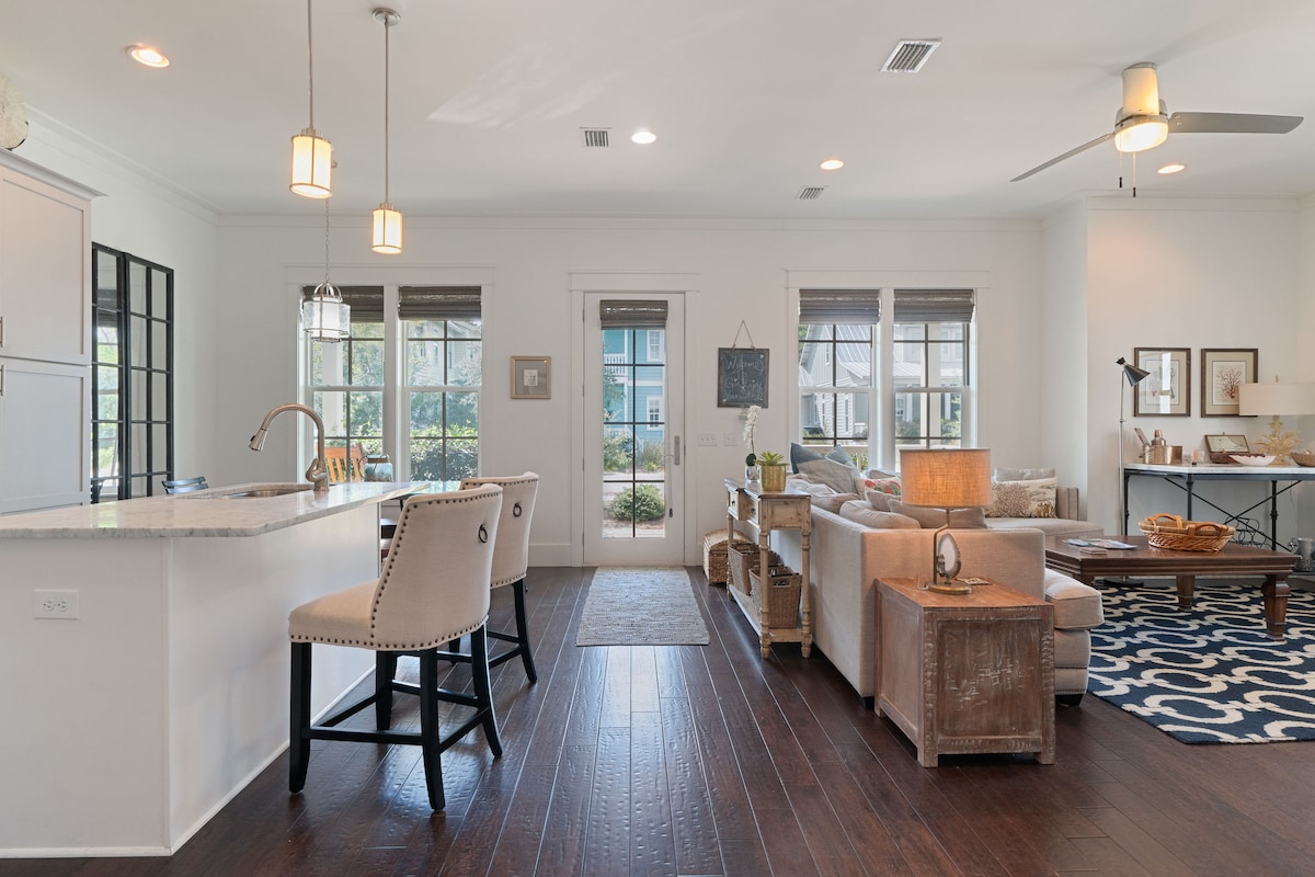 Pequeña en estatura pero grande en diseño, esta casa de playa 30A te dejará con la boca abierta. Acceso a la piscina del barrio, al gimnasio y a las hermosas playas de arena blanca a unas manzanas de distancia. Small Waves se encuentra en la zona de Blue Mountain Beach, famosa por su encanto, sus restaurantes y su famosa heladería. Tenemos un cargador de coches eléctricos (sin cargo adicional) y acceso a un carrito de golf eléctrico (con cargo adicional). El dormitorio tiene una cama tamaño king y una cama individual, y también hay 2 camas individuales arriba.
