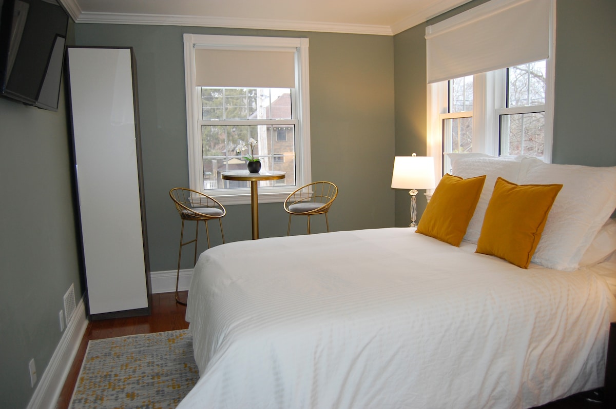 Elegante suite king en Bradshaw Lofts: The Clairemont. Descubre la fusión de lujo moderno y diseño atemporal en nuestra suite King. Con una suntuosa cama tamaño king, una cama queen plegable, Netflix y una cocina totalmente equipada, la comodidad se une al estilo. A pocos pasos de los restaurantes y tiendas del centro de Stratford y cerca de los teatros del Festival de Stratford. Experimenta una elegancia inigualable en The Clairemont.