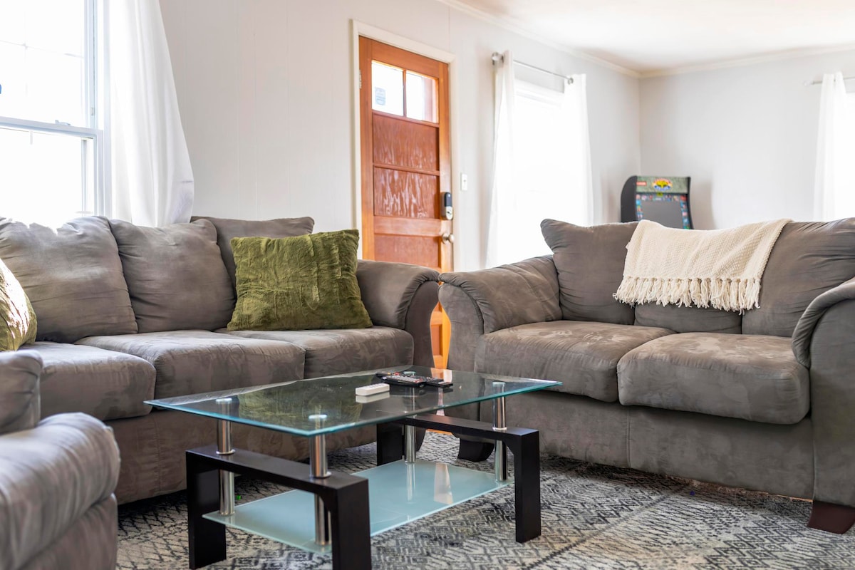¡Sin tareas de limpieza! Hard Rock Cottage tiene un comedor/sala de sol abierto y luminoso con un televisor de 55 pulgadas y una cafetería para ponerse al día con las noticias o ver el partido con amigos. Tiene una gran área al aire libre con cómodos asientos y una fogata para mantenerse caliente en las noches frías. Para cualquier jugador, tenemos un gabinete de juegos arcade con cientos de juegos y una mesa de futbolín.