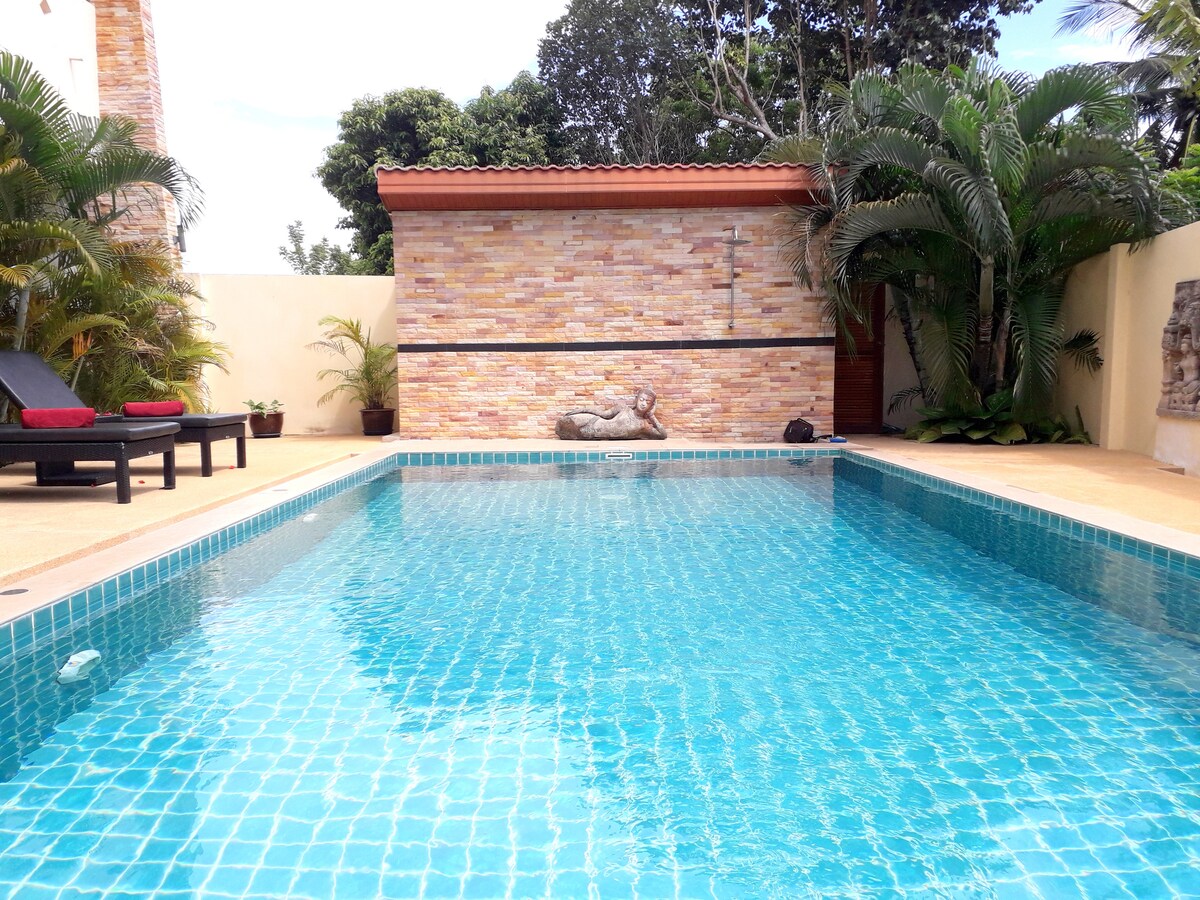 Villa Calypso. Diseñada para parejas, pero perfecta para viajeros solitarios. Ubicada en jardines maduros y cerca del pueblo pesquero de Bophut. Paz y tranquilidad personificadas, pero con todo a mano. Seguro, moderno y limpio. Parte de una pequeña residencia, con atractivos jardines y piscina muy grande. Maravillosa cocina moderna con lavavajillas, cafetera Nespresso y lavadora. Ideal para estancias largas con mucho espacio de almacenamiento. Acabado de pintar, ¡muy brillante!