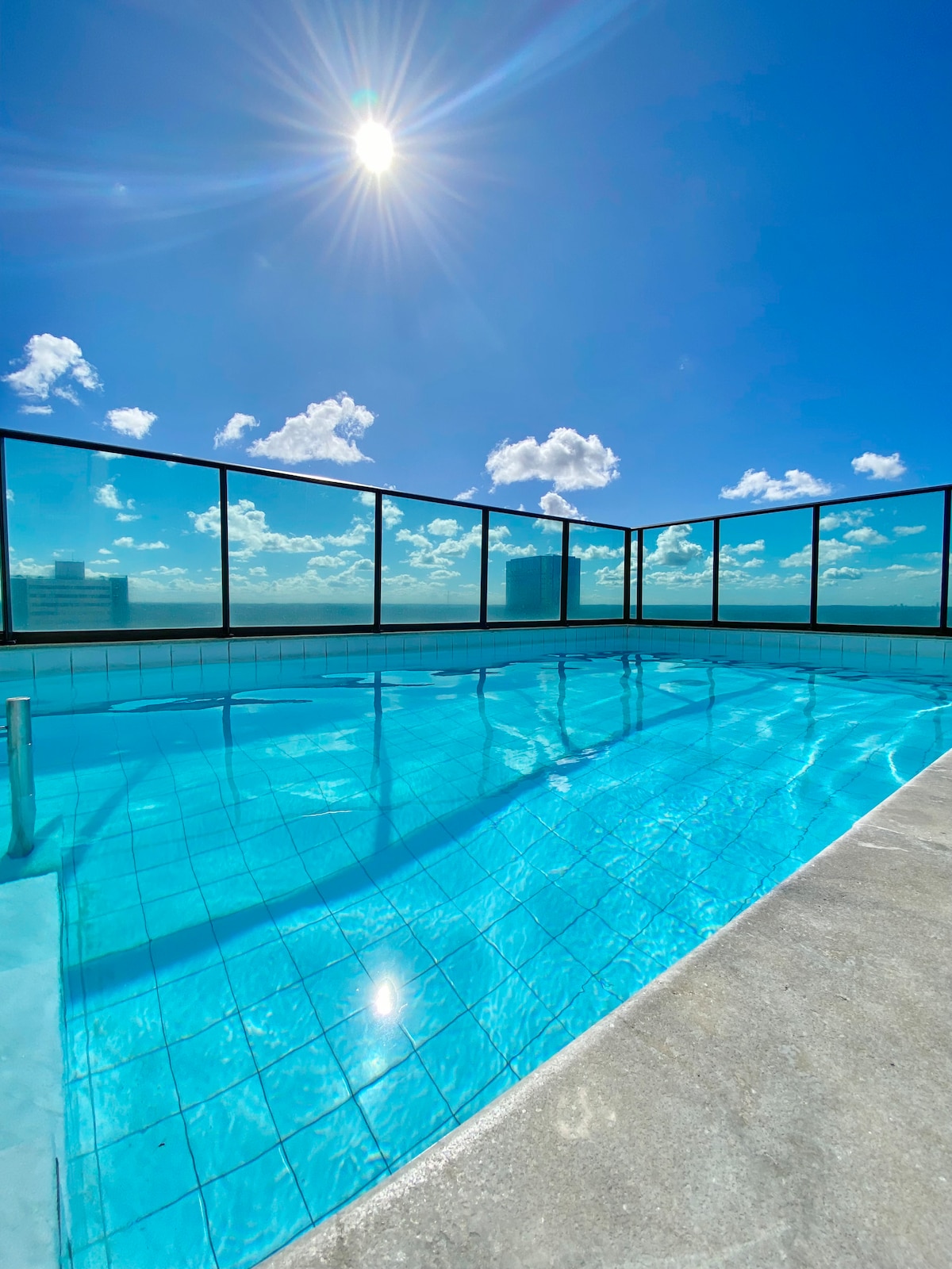 Apartamento nuevo equipado con: cocina, nevera, microondas, TV, aire acondicionado, cafetera, sandwichera, vajilla, cubiertos, cama box, ropa de cama/baño, internet óptimo (100 megas). El edificio cuenta con cafetería, gimnasio climatizado, piscina en la azotea con una gran vista, sauna. Excelente ubicación en Boa Viagem, frente al supermercado Walmart, a 2 cuadras del centro comercial Recife, a 4 cuadras de la playa y a 15 minutos del aeropuerto. Fácil acceso al Consulado Americano