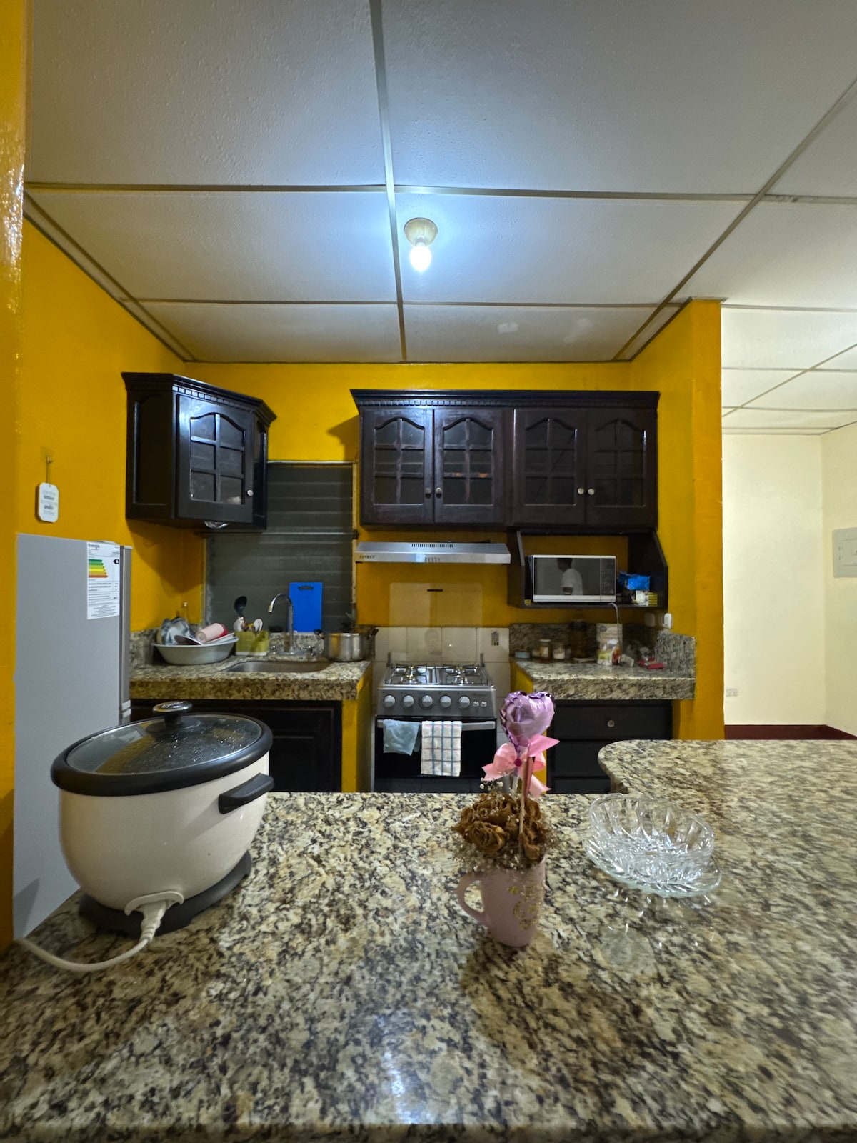 Desconecta de tus preocupaciones en este espacio tan amplio y sereno. Con garaje para un vehículo con entrasa independiente. Ubicado en el centro de San José de los Remates. Cuenta con balcones, cocina con estufa y refrigeradora, área de comedor, sala con TV, wifi, habitación para tres personas (cama queen y un sofá cama) con abanico de techo y baño. Excelente vista hacia la montaña desde el balcón de la habitación. Cuenta con Parqueo interno y entrada independiente en el segundo piso.