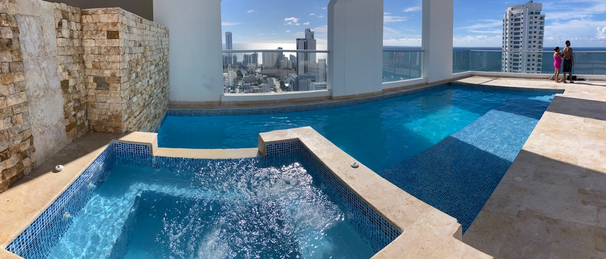 🌴 Vive el lujo en Cartagena ✨ Este exclusivo penthouse ofrece una espectacular vista panorámica a las playas y al Centro Histórico, ubicado en una de las mejores zonas de la ciudad. 📍 A corta distancia de centros comerciales, restaurantes, casinos, playas y a solo 10 minutos del Centro Histórico, es el lugar perfecto para tu estadía. 🏢 El edificio cuenta con piscina, jacuzzi, zona de recreación y gimnasio para que disfrutes al máximo cada momento. EL EDIFICIO NO ACEPTA VISITAS