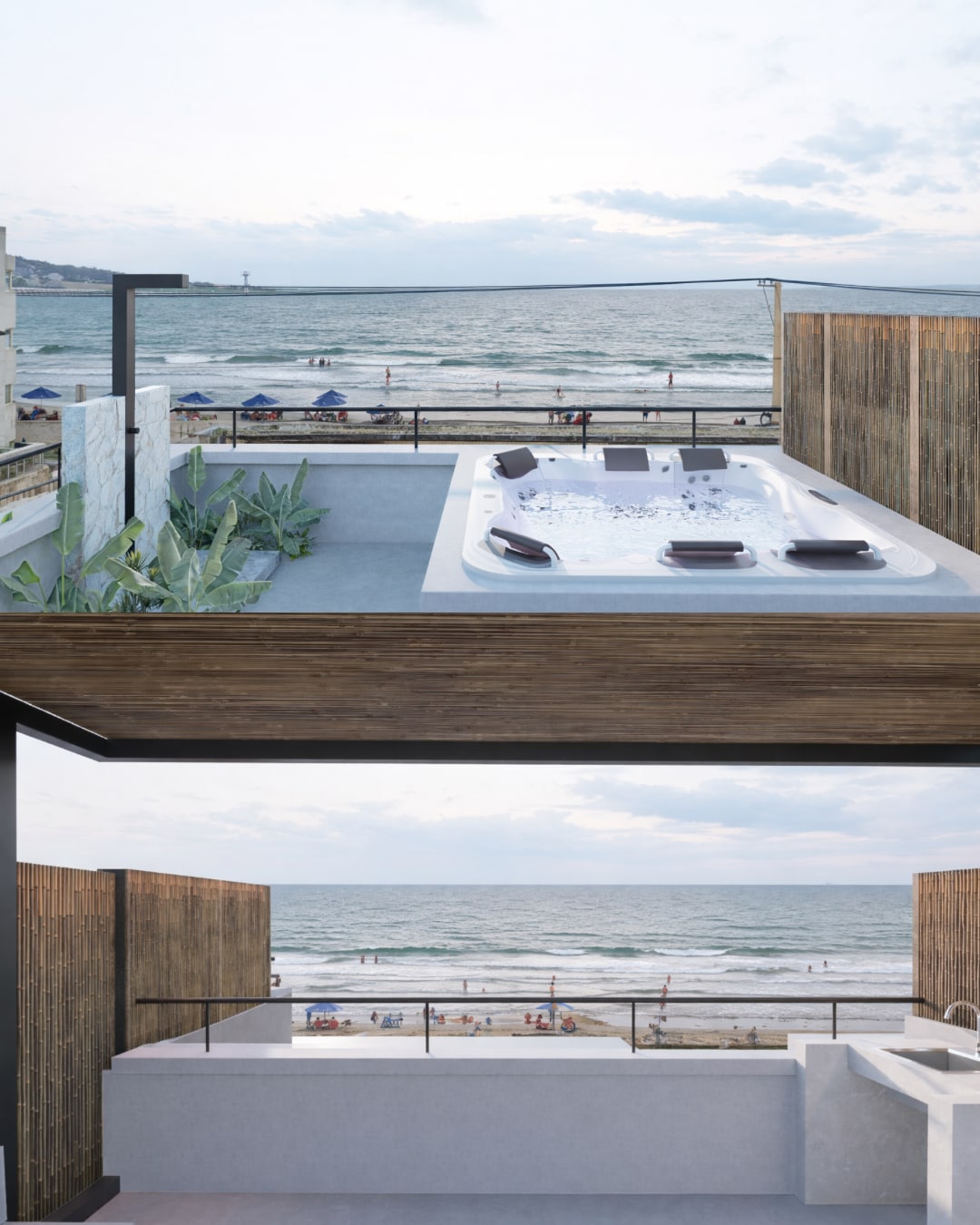 Piscina en planta superior, 35 pisos, frente a la playa, vistas al mar☀ 180°☀
