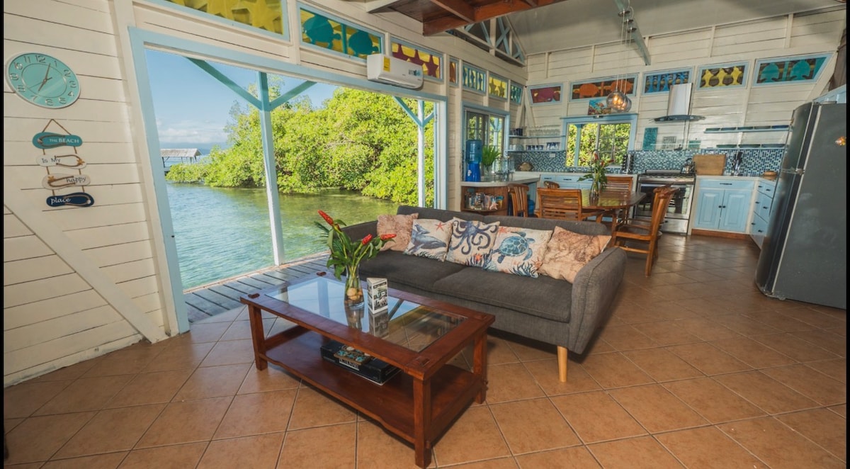 Beautiful Eco Beach House with luxury touches! Relax on your spacious private deck overlooking the coral reef. Snorkel right off the dock or hop into the warm water from your beachfront cabana. Be mesmerized by the vivid overwater sunsets in front, coconut grove on either side, and lush rainforest behind. Fall asleep to the tranquil sound of waves lapping below. Wake refreshed with coconut water from your own coconut grove. Our team looks forward to welcoming you! -GoGo, Mili, Mikel, Eimy, Baby