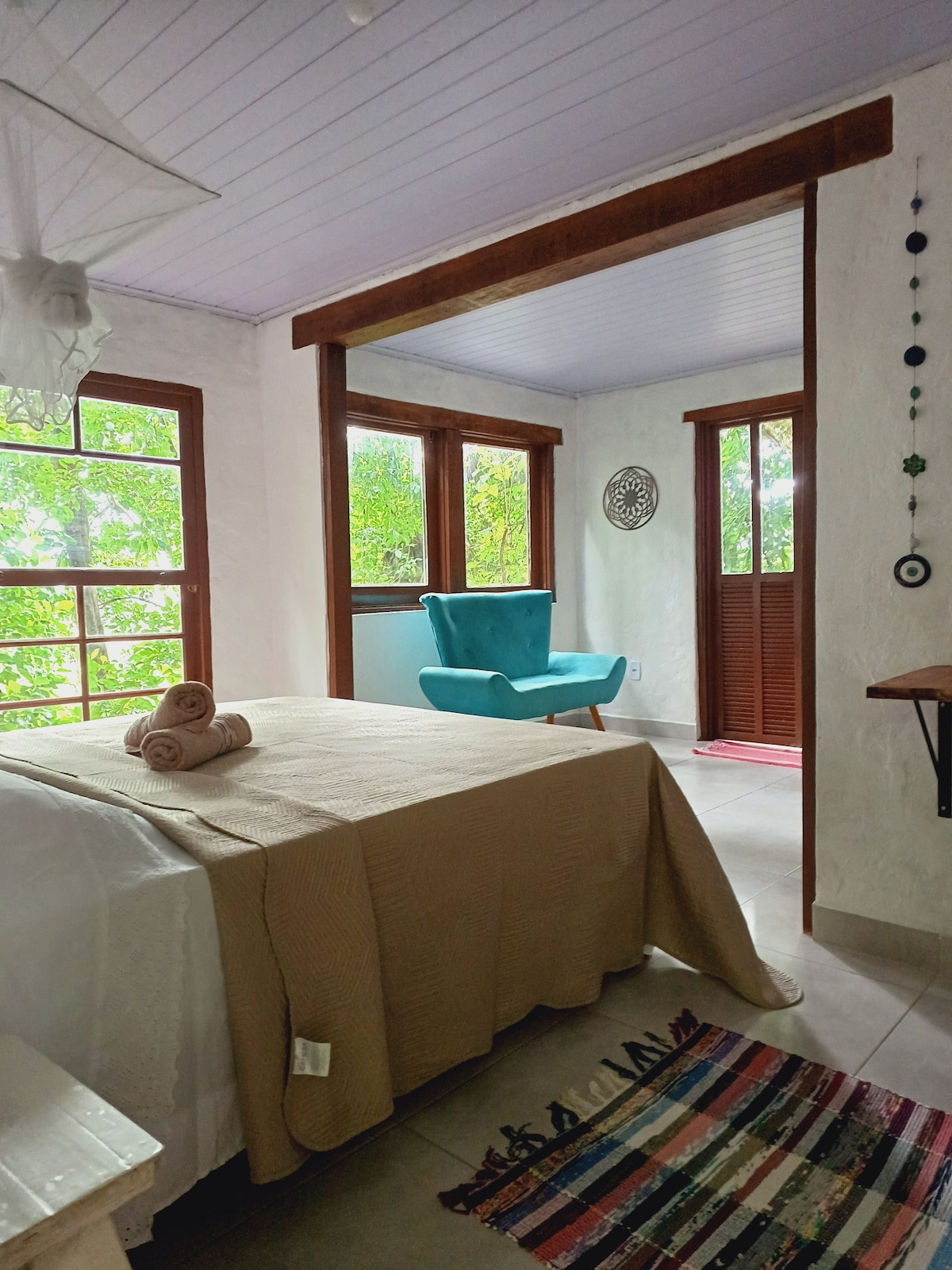 Podemos nos considerar sem modéstia uma hospedagem perfeita. Perto de cachoeiras, praia, entre rios e a mata exuberante, mas com todo conforto que inclui banheira de hidromassagem . Entre no embalo dos sons da natureza em uma ilha entre dois rios, no meio da Mata Atlântica com conforto e segurança, longe de todo barulho e à dez minutos de ótimas praias e restaurantes. Lugar encantador para desfrutar e amar.